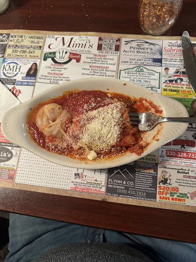 The menu is disappointingly small and has few Italian meals. Front of menu is appetizers and sandwiches/burgers. The back is 1/3 Italian dinners (spaghetti, cavatelli etc) the other 2/3rds are alcohol.