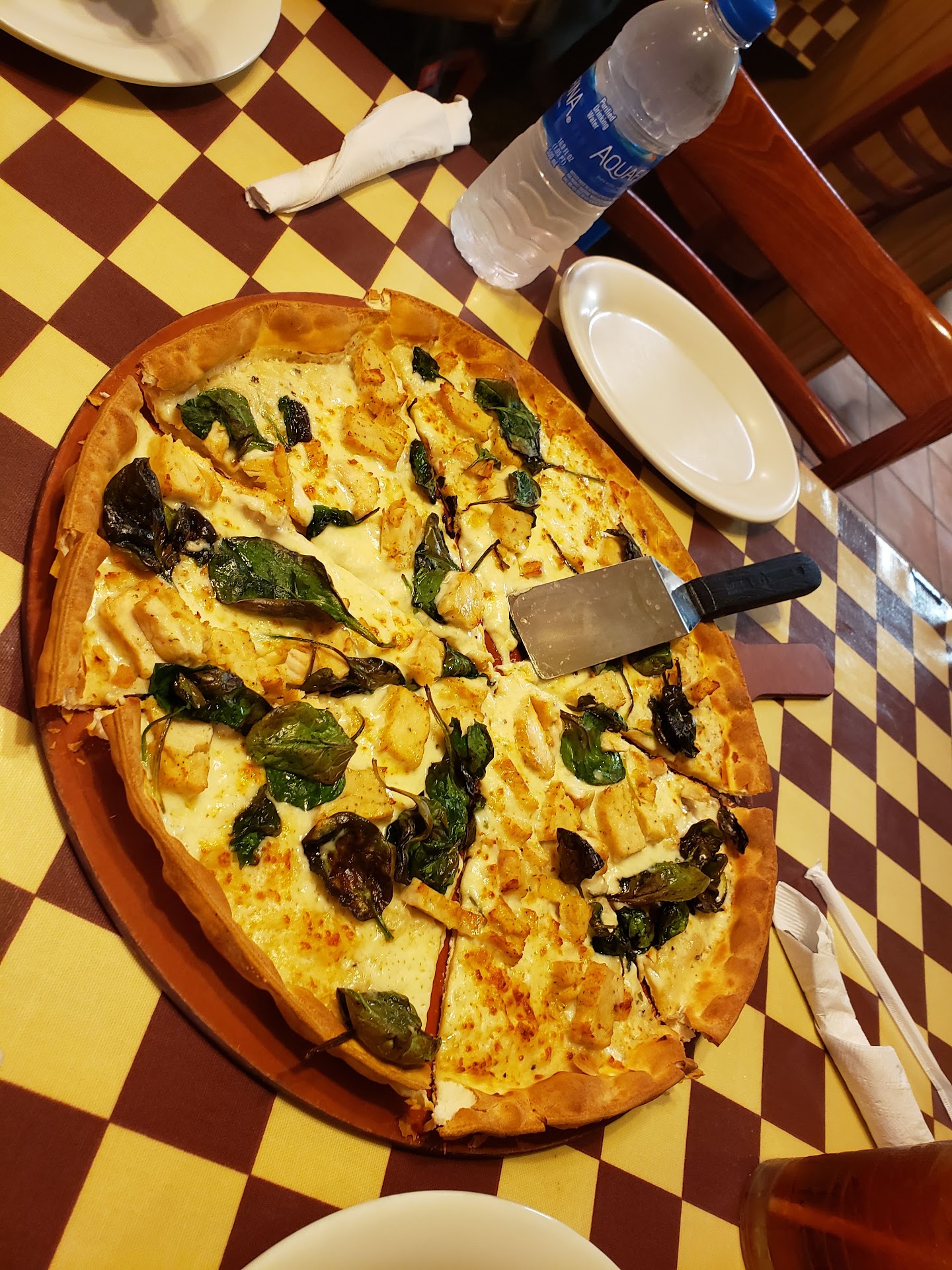 We enjoyed a good meal, but they were "out" of a few items on the menu... Hand tossed crusts and stuffed crusts... though the waitress made us aware of the "special" (large 2-topping pizza, $7.99).