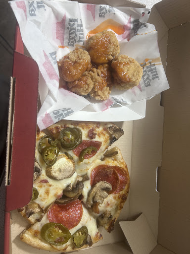 Read moreWe ordered 2 pizzas online and 2-2 liters of pop, one starry and one mt. Dew. Ordered it carry out/pick up, when I got there nobody came to the window so I tried going in the lobby, the door was locked even though it says right on the door that they were open till 1am. And it was 12:15, so since that was locked and nobody answered when I knocked I drove back around to the window and banged on it, still no answer, I finally called and someone walked up from the back and I could clearly see her, she answered the phone and started to tell me that she was going to put me on hold until she seen me on the phone through the window, she gave me the pizza but no pop and when I got home and opened the pizza it wasnât even cooked all the way, still raw dough on the bottom, had to put them in the oven just so we could eat them, never got the soda or a refund for it and she pretty much told me Iâm effed when I called because by then they would be closed by the time I got back, terrible service, crap food, I guess good help and good pizza is hard to...