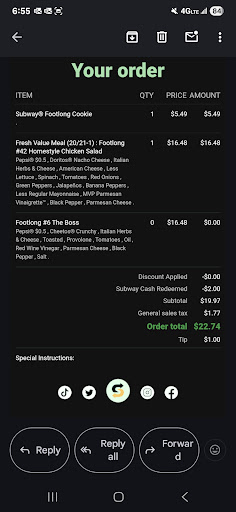 Read moreFirst time at this subway. I ordered ahead of time knowing that dinning in was not an option because of COVID-19 precautions. Once I got to the store I found the door was locked and the drive thru was unresponsive. I took a lap to make sure there were workers inside, and there were. When I got back to the drive thru I was told "can you like wait a second before driving off again" in a surprisingly unfriendly tone. I gave my apologies and explained the reason for my driving off but she maintained what I can only describe as a bratty hostile tone. Truthfully this left myself and my partner at a loss for words, especially since I myself work in the service industry and know that there is no justification for talking down to a customer. I understand the day was probably dragging on and they probably would rather have been home staying safe and healthy during this pandemic and I do appreciate their service as an essential worker, but none of this justifies an attitude toward those you're providing a service for. Food was...