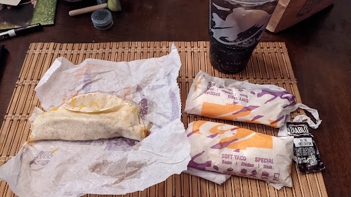 Read moreNot bad, but not excellent. Food was fresh, hot and good. Had the appropriate amount of ice in the drinks. No complaints really. However the manager seemed very dismissive and short with me after they realized I was a door dash delivery person and I felt like I was treated bad because of that and that's not fair. Perhaps you may have had a bad experience with another Dasher, but don't take it out on me, I'm new to this location and I have a very good reputation. I never did anything to you. But I love Taco Bell and I am also a customer. I love the Quesorito! I fully acknowledge that people are working hard and doing a good job it seems. Yes times get busy and people get tired, I get it, me too, but please take care of all the customers with quality service and friendliness. I work in customer service also, so it's not like I'm speaking out of turn. I like reviews so that we can all learn and grow from shared thought and insight. Thank you. See...