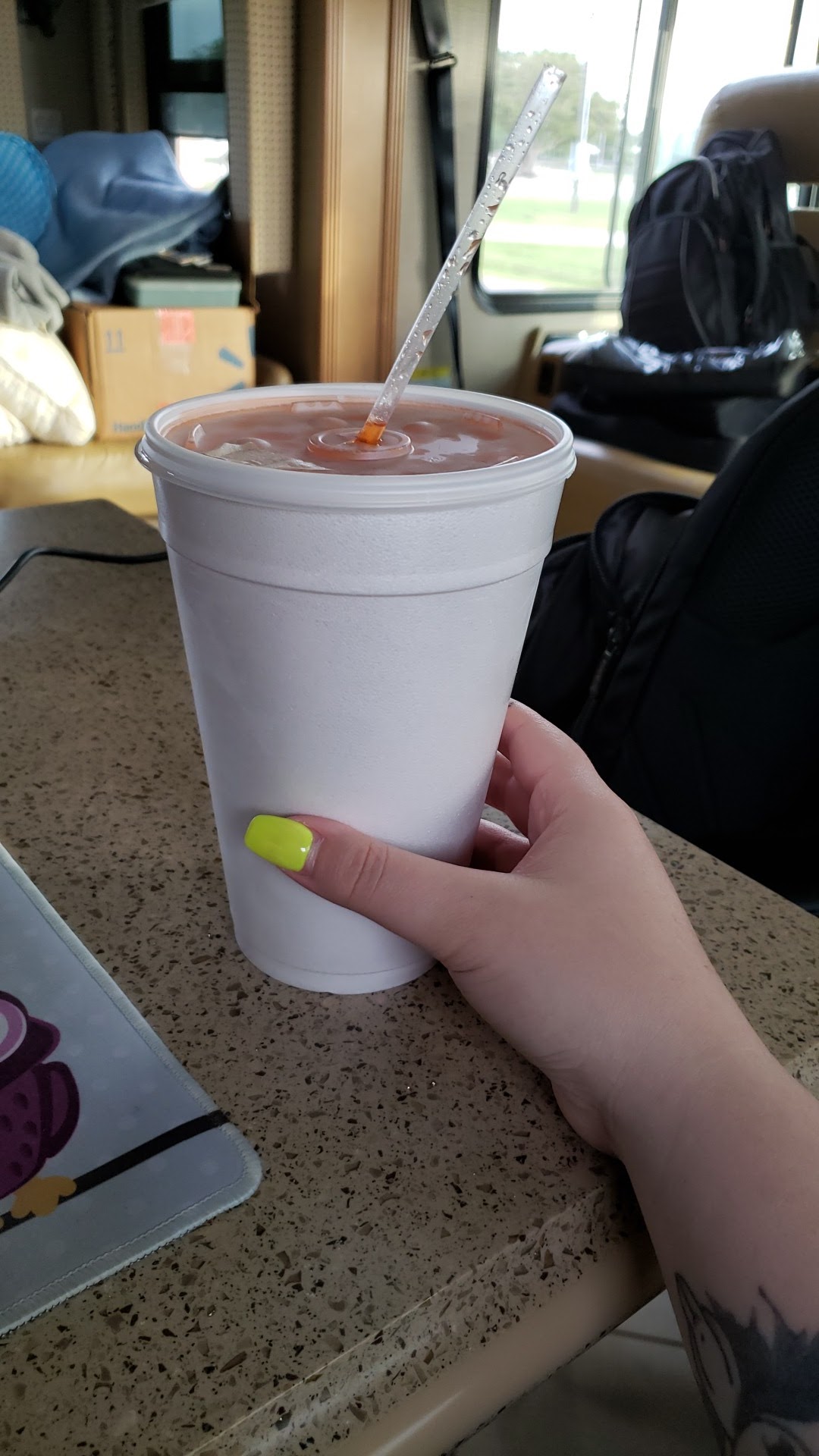 Read moreRayne Location: The girl could've been a little more polite. It's not very personable with the way the drive thru window is set up. When you spend over a $130 on drinks at one time you'd think you would get treated a little better. The Kaplan location is way better imo, I wouldn't doubt I would've been offered a complimentary drink or...