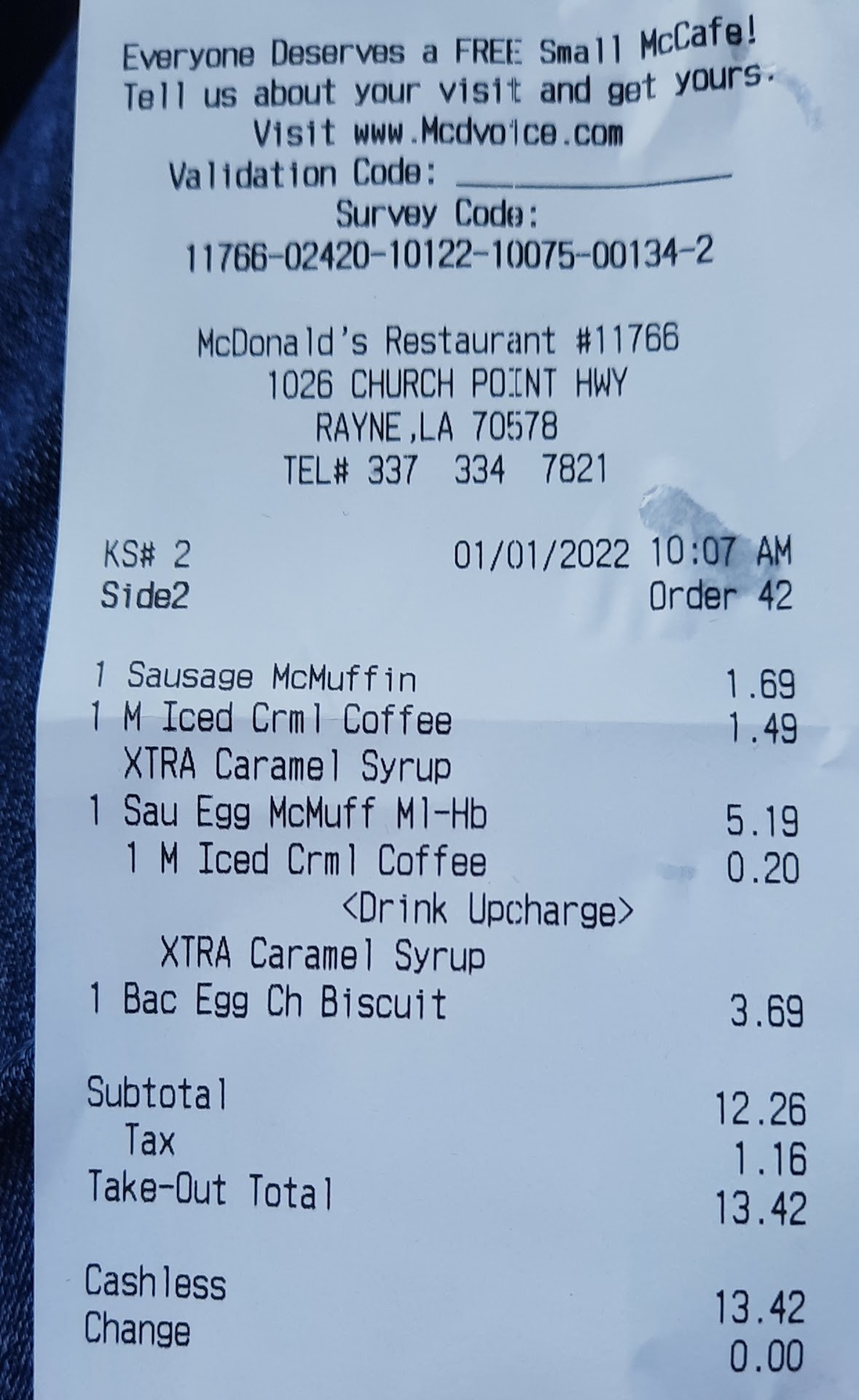 Read morePLEASE CHECK ALL THE ONE STAR COMPLAINTS! If youâre hungry for McDonaldâs, I understand. We all get hungry for their magical slop from time to time. Our bodies crave it. Nonetheless, drive a little ways down the road to Crowley or Scott!! âThe only thing necessary for the triumph of evil is for good men OR women to do nothingâ⊠you will leave empty handed, robbed of your order, and pissed off beyond imagination if you attempt to do business with this Rayne branch. They have robbed people of money and food for a while now and Iâm not even sure how this is legal and how they continually get away with it. Thereâs no way in hell they cannot refund your purchase if they canât deliver the promised purchase of food. This particular location is a CULT!!! I would hate for someone broke, like myself, to go for a meal and leave robbed and hungry. Judas people I tell you!!!!! McDonaldâs will hire anybody. Do you really want these people preparing your food when they rob people left and right?! Nothing is beyond their capabilities at this point! McDonaldâs owes me money. If I went there and went behind the counter and helped myself to the FOOD I PAID FOR you know they wouldnât hesitate to call the cops. Injustice. Please people do not support this kind of âbusinessâ BOYCOTT THIS LOCATION. Message me if yâall have the same experience. We have strength in numbers! Donât say I didnât warn you! Burger King is right across the street and Iâve had nothing but incredibly nice and professional service from them along with that big...