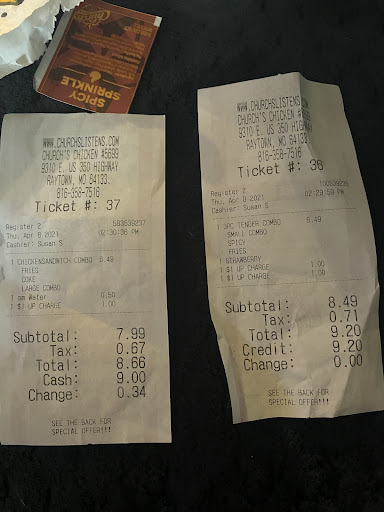 I don't visit Church's Chicken as often as I used to before they sold the company and changed the recipe for the food especially the changes in specifically the fried chicken and I don't care for the new taste so I have been trying to check out the variety of things that they have now. Do you ever have any chicken strips from the freezer back in the day before you sold it because those chicken strips were doing everything right back then. My order today are nearly hard as rock and just as dry and I can't eat this tonight this is so bad and then I was supposed to be getting the famous honey buttered biscuit but I don't have any biscuit in my bag with the way this place has been sending me out with any of the biscuits in the more recent past they seem to be very limited on the smothering affects that they once had on a yummy biscuit so I can figure out why it was just not in my bag they are cutting everything out so they make you think you are going to be getting a biscuit but they don't put it in the bag and by the time you make it home and get to eating your dinner you don't usually go back just to get the biscuit but I want my biscuit please! I'm so tired of this poor customer service and it's not just at this restaurant I'm finding it everywhere I go. And then I have been noticing that they are going to make you wait if there's some man in line behind you and then you are a woman. Today's visit with this one in Raytown Missouri might as well have said that I need to step back to let the man come on to get his order but I can see my bags of food on the counter and the four men that were working all dove in to help this man who had came in behind me . Now what is happening here? I thought was what I was experiencing in the last few times I was here but this visit today and he did tell me that I had to wait 2 minutes but why when everything if mine was already ready for me to grab and go but I had to wait for the customer behind me that happens to be a man that I was so shocked and I don't know what to do with this situation here tonight but tell my Google review about it and let the rest of the public decide what they experience when they are at this location and did you see that I had said that they were the RAYTOWN MISSOURI restaurant in 350 hwy. And then I will be watching for the upcoming results to see what happens when others who are of the same sex as I am discovers.