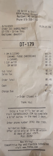 Read moreI pulled up into the drive thru at Dairy Queen in Raytown and place my order. When I pulled up to the window they give me my order. When I got home my order wasn't complete. My order was missing ice cream and they make 2 my salads wrong. I ordered grilled chicken salad and they gave me fry chicken. I went back to Dairy Queen and asked for Manager. Manager said I was making your salads.How Manager can make wrong salads? She probably doesn't have any experience in business. I asked her to give me my money back for the ice cream and she did. She also gave me the 2 cards credit which is $10.00 dollars each and on those cards says "We will Make It Right "We Make Happy......for next time I decide to come back. After one week I went to Dairy Queen in Raytown and place the order on drive thru . When I pulled up to the window I gave to the cashier my 2 cards which has $20.0 dollars credit and she told me we can't take those because the signature on the cards doesn't look like the Manager signature and also Manager is not at work and we need approval. I told the cashier it's not my problem. When Manager gave me those cards she didn't tell me anything about approval. The first time when they did my order wrong I was waiting in line for one hour. I was very upset with Dairy Queen in Raytown. They have very bad customer service and they also very rude. I'm done. I'm going to take my business to someone else .I hope this review will be helpful for...