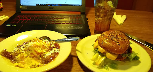 Read moreThe food here is consistently good. The menu changes frequently so I always have something new to choose, and the tables are always clean. My issue, however, is with the wait staff. Two of the six different servers I've had have been good. Most of them are pleasant people, but I've had several mistakes happen across the number of times I've been there. I ordered their spicy siracha burger a while back and I received the wrong burger; there were no jalapeños that were in the description and no spicy sauce. I brought this to the attention of my waitress and she asked me to lift up the top of the burger so she could see it. She told me that this was infact the spicy siracha burger and that she had eaten the same thing herself earlier. I hadn't planned on eating anything substantial when I had arrived and lost what had existed of my meager appetite after not receiving the item I had only ordered impulsively. After my slow-eating companion had almost finished her meal, we finally saw our waitress again. She realized I hadn't even touched the burger at all and, with no input from me, took the burger into the back and miraculously knew exactly what was supposed to go on it. A couple months later I got the same waitress. This time when my companion ordered hot chocolate we were told they didn't have it at all because it was "out of season". She had ordered hot chocolate two weeks before, and, just because I'm a little vindictive, I came back the next day and successfully ordered hot chocolate from a different waitress. If you're out of something, please say so, and I will happily choose something else. Don't lie to my face. Twice. Sadly I cannot recall the names of the good waitresses to...