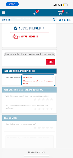 Wow where to start? The dissopoinment Started about 3 days ago when I ordered a pizza from this location and the decent strated. Everything seemed to be ok until the driver showed up who I met outside to save them he or she trouble. He gets out of his car in 5° weather with no hot bag and gives me the pizza and walks away.