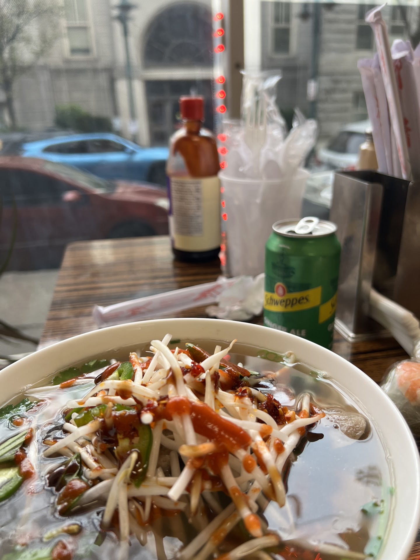 I have been committed to exploring Reading on foot on my days off. Came here with no expectations. I wasnât put off by the atmosphere or the ants marching along the window sill facing City Hall, I was turned off as soon as I heard the microwave door slam shortly after the Woman went back to prepare my order. So the sliced beef is tough it should be fresh and thinly sliced allowing for the hot broth to cook it the rest of the way. But the broth was flavorful and hearty. The mark up of the food I would expect better considering it isnât a fully staffed restaurant with zero ambiance. Before I give them a second chance I will see if I can actually find good Pho in Berks. But it seems the people in Berks Valley more out of touch then...