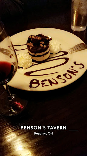 The food was SO GOOD!!! We started off with the West Benson St. Sampler: Reuben Rolls, Potato Skins and Mac & Cheese Balls. This comes with three complimentary sauces. Delicious!!! For the meal, we each tried something different and shared a bite of each, so that we all got a taste. Two burgers: 1 Up Burger with mushrooms, onions and melted Swiss cheese. (It was a 3 napkin sandwich.) Side of sauteed vegetable which were of perfect tenderness. Second burger was the Benson's Tavern Burger with a side of mashed potatoes. Fish 'N Chips with Fries: It was perfectly deep fried to extra crispy on the outside and hot/tender inside. A favorite to everyone's sampling taste-buds was the Benson's Country Bowl. It is "comfort food plus"!!! It's a bowl of mashed potatoes (a large portion), which are delicious on their own, topped with three deep-fried chicken strips, gravy, corn and Cheddar Jack cheese. The pleasure of the flavor, as soon as it hits the tongue, creates an immediate response of, "Oh my gosh, I should have ordered that!"