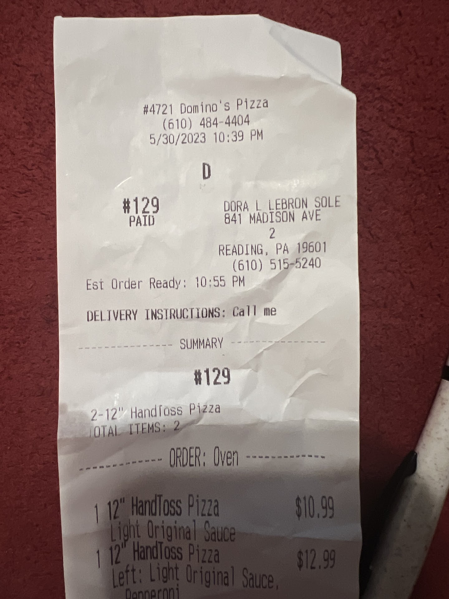 Read moreWould give this dominos on okey st 0 stars if possible....orders are ALWAYS late up to 2 hours for delivery...food will be cold and the workers inside Dominos are ignorant especially the male manager and definitely should not have a job!! Actually hangs up and curses at u over the phone and will cancel ur order without telling you cuz he can NOT handle the stress obviously....One delivery driver was very polite...that's the only good thing I can say....so DO NOT order from this Dominos......