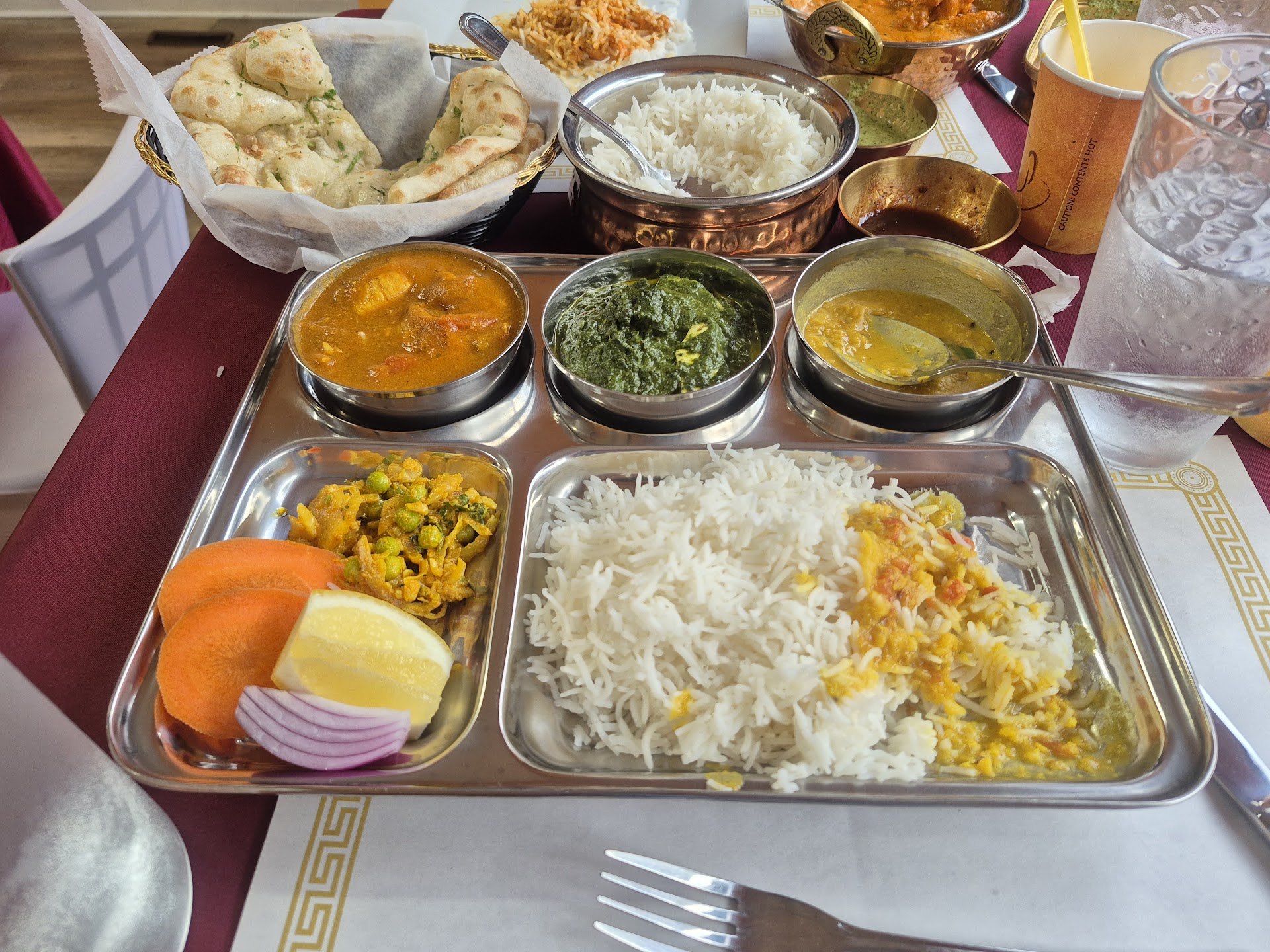 We stopped in for lunch and both ordered the thali: she chose the Vegetarian Thali, and I went with the Chicken Thali. Each came with delicious palak paneer and dal, but the standout elements were the main dishes. My wife's cauliflower in a rich tomato sauce was beautifully mild yet bursting with flavor, and my chicken in a similar tomato-based sauce delivered the perfect medium heat — just enough to wake up the palate without overpowering it. Every dish was fantastic — rich in flavor but refreshingly light on oils and creams, allowing the ingredients to truly shine.