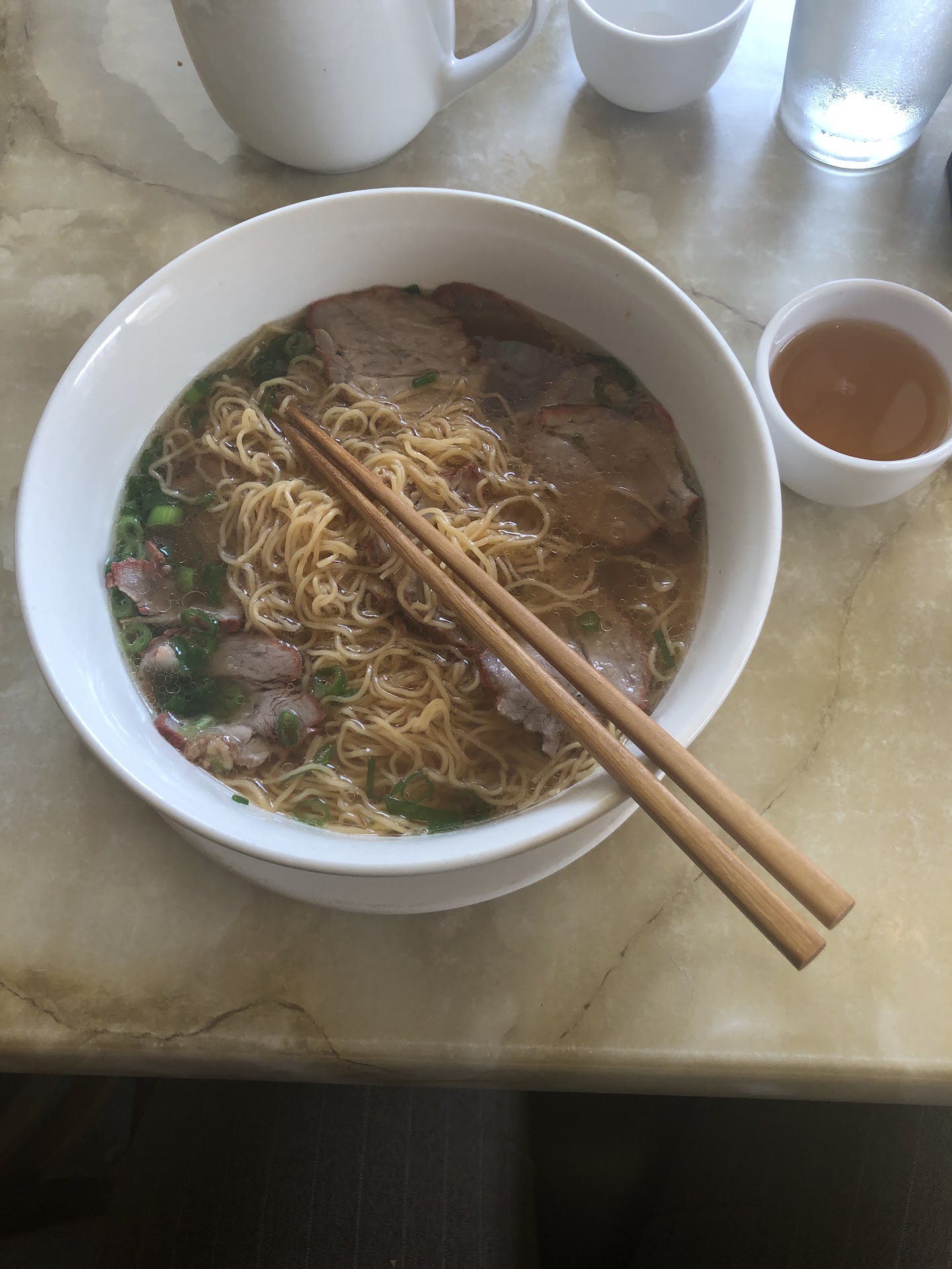 I ordered food for myself and my mother and was quoted 20-25 minutes. She arrived 15 minutes early and the food was waiting at the front desk for her. I live across the street in the Berks Trust Building and I was finishing wfh. My mother got veg noodle soup for the first time and I got my normal beef pho. She couldnāt tell which broth was hers. One was clear and the other was light brown which was odd. Normally the beef broth is darker brown. She ate her soup w clear broth and mentioned it seems light in flavor. She never had it before so we just assumed thatās how it was. I went to heat up my pho and took a spoon of broth and noticed it tasted diluted and very mild in flavor which again is very odd. Normally I can heat it up on the stove and double the broth by adding water and it STILL is packed with flavor. I had another sip and was sure something was wrong. I called Lang and asked if something was wrong today because the pho does not taste like normal. They asked me to bring it back so they could check it out. I live across the street so no biggie.