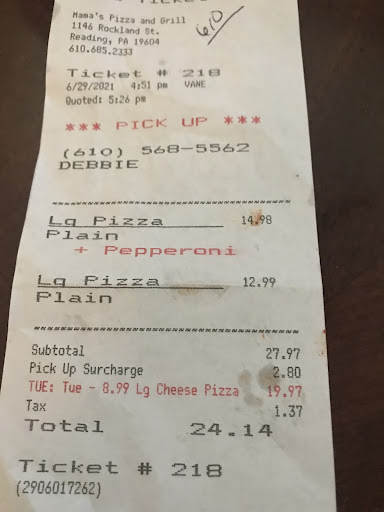 Ā Ā Ā Read moreMama's is a staple here in Berks County. If you are ordering Dominos or Papa John's in the Reading area, you are doing it wrong.