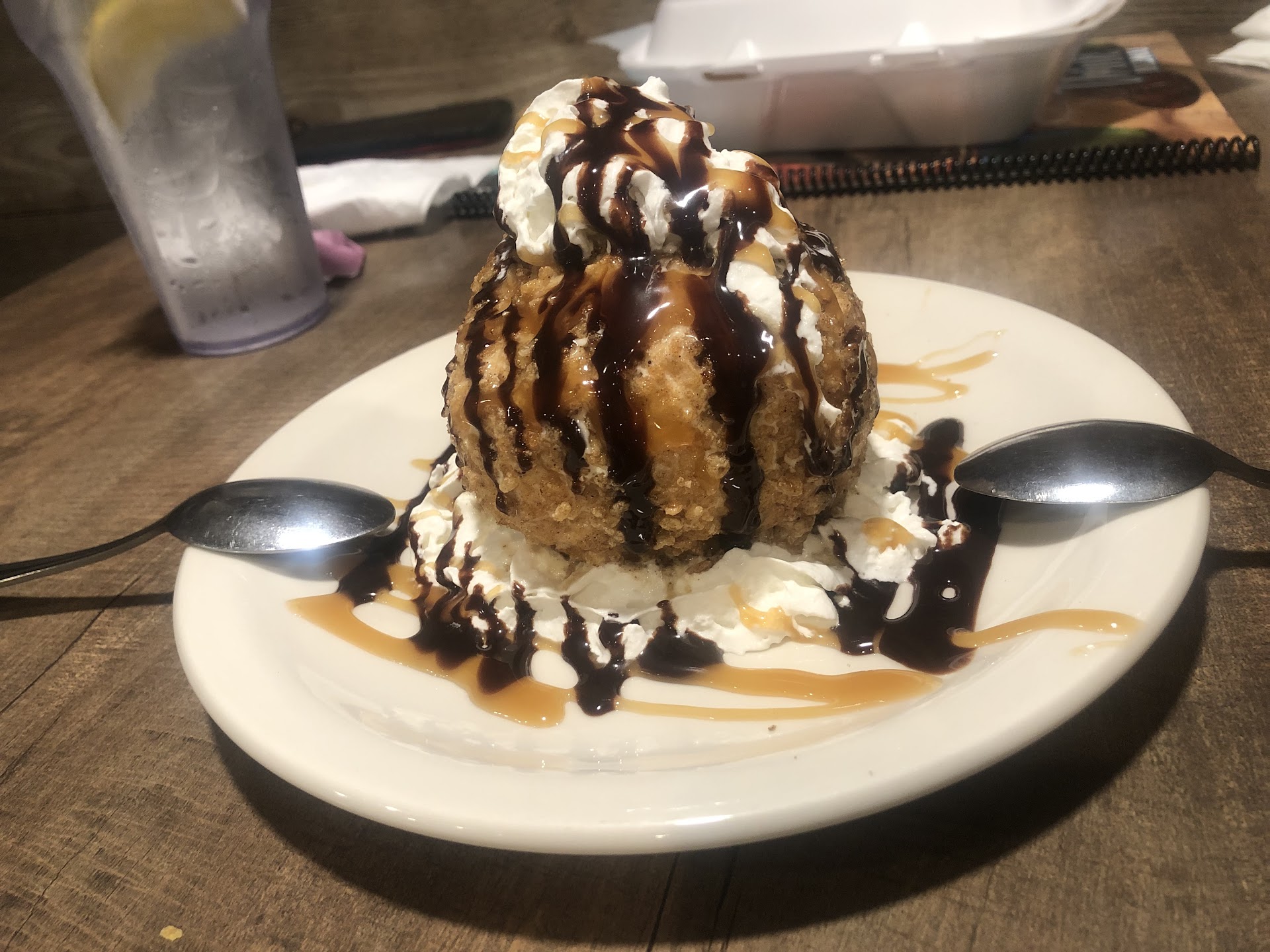 This is the 3rd Mexican/Spanish Food Restaurant I have tried. The menu made the food I ordered "sound" delicious but when it showed up:. NO color as everything was colorless:. Rice was undercooked with a couple if peas, carrots, beans tossed in / 3 enchiladas choices were swimming in a salty cheese sauce and stuffings were just tasteless / fried ice cream wound up going home with me (I live close) so I had dessert for 3 days / NO salted rim on my Margarita (although this place DOES actually have Tequila in them) /\ the Atmosphere, plush booths, skeleton at the bar for Halloween season, and Wait Service were the best part of my visit ~ oh yeah the standard chips for dipping were also tasteless but dips were good to add to my food to give it flavor.