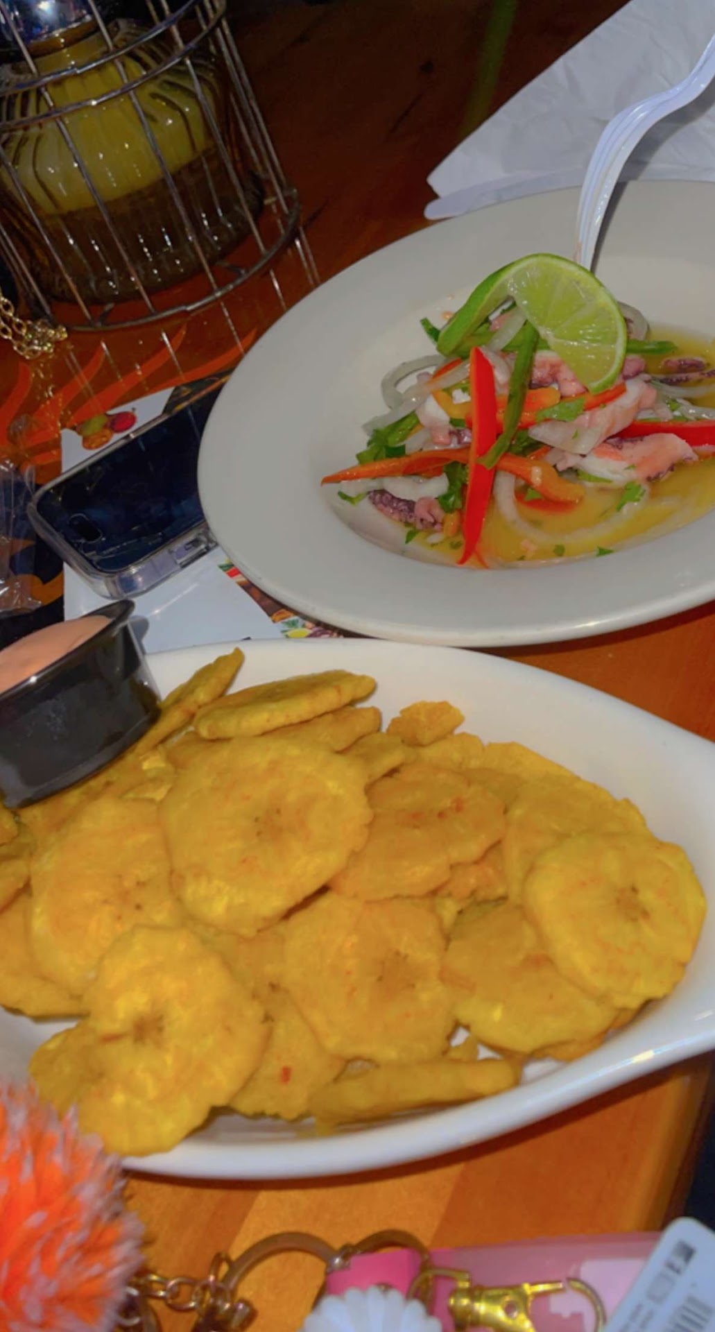 Ordered boneless fried chicken & fried fish, 2 mofongo's with shrimp ordered both 1 with white sauce (Alfredo sauce?)& 1 with red sauce, platter comes with choice white rice & beans or plantains= tostones or fries comes with each platter. I ordered out I have to say all thumbs 👍 food was great! everything was seasoned to perfection. I will definitely make time to go eat in the location get feel of place. Entered saw small lounge area with pool table..Im curious to try other foods on their menu. I did have hard time finding clear menu online. When I called to place the order I was informed they don't have a delivery service at the time although website says dine in or delivery and for my large order I was told I couldn't pay with debit/credit they require cash. So be prepared if you're going to pick up your food. I was omw to family members yet for next time I will place the order with ubereats for delivery. I do recommend this place for their prompt professional service and fantastic...