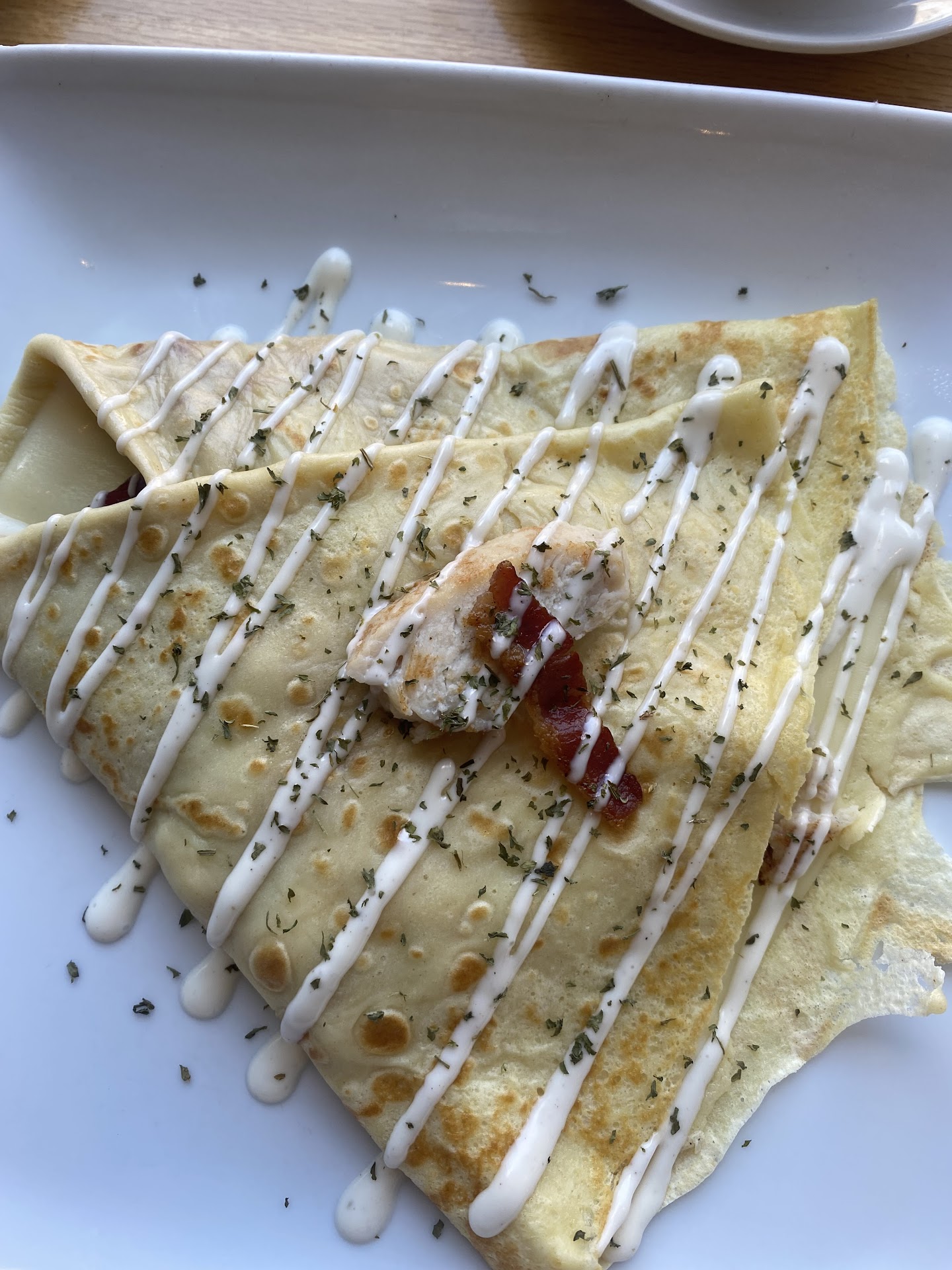 Read moreStopped here for the first time while I was out and about. I’m a big crêpe lover and I was not disappointed. I got the chicken bacon ranch crêpe and it was delicious and filling. I got a cappuccino with caramel and it was perfectly hot and the coffee tasted soo yummy. The atmosphere is cozy. Great for doing homework, reading a book or meeting up with some pals. Can’t wait to come back and try a sweet crepe and the array of other food items/drinks they have to offer. The customer service was also kind and I didn’t wait too long...