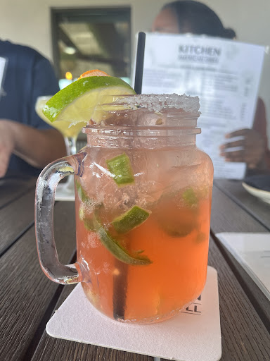 Atmosphere is really great- a gem in this area, relaxing, mix of modern and rustic, and although it was humid when we ate there, the outdoor patio looks inviting and we might come back on a Thursday night when they have live music. Service was great- a little delay in getting our waitress's attention in the beginning but she was pleasant and helpful once she got going. The hostess held the door open for us when we left, which was a great way to end the meal and make us want to come again. The food was a mix, to be quite honest. Their drink selection and mixed drinks (including NA drinks) are a great variety and tasty! Great on tap beer selection as well. The shrimp tacos were delicious and seasoned really well. The kid's pasta was delicious but a huge portion... I wish it was slightly cheaper, and a lot smaller. The kid's meal size would be perfect for a 12 year old, but could be shared by two 6-year-olds. The burgers, while described with tasty and inviting terms, unfortunately fell extremely short of price and expectations at an American- style restaurant. Three of us ordered burgers cooked "medium," but we received 100% well-done burgers. They were all dry and not flavorful. 2 had just a piece of bacon and some cheese. No lettuce or tomatoes, or onions or anything else. The fries were ok but below average for freshly cooked fries, if that's what they were. There is a "dive" restaurant down the road, with a number as part of its name, that if Kitchen American Grill learned their technique of cooking burgers (their medium is truly medium), would probably have moist, delicious burgers flying off the griddle every night. Looking around at whatever others' ordered, I didn't see any other burgers. So in a nutshell, we'll be back! But not for...