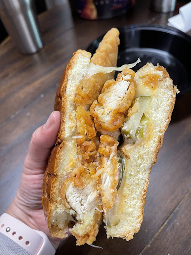 Read moreDisclaimer**HeftyReview. As a traveler passing through from New York, I can say this restaurant's atmosphere caught me immediately. I could not stop complimenting the color combinations in layout, choice of decor, and simplicity when it came to presentation. Not saying complex dishes are intolerable, but its been a while to see a difference as far as my journey goes. Can be different for someone else. I shared to my sister that I kept getting a relaxing high-grade 'Peter Pan' idea whenever I looked at the chairs. I absolutely loved it. The food? Oh, just yes. I kicked myself for not trying a drink or two because I've heard they're good, but I had both the adult grilled cheese and signature Burger. I can say full heartedly, I am not a Burger person. This Burger had me going for MORE. The grade used? Yes. Their fries? The best I've ever had. If I could, I'd order those with every fry/chip complimentary meal for the rest of days. The grilled cheese and soup to dunk? I am a soup fiend and oOF. I was obsessed with the red pepper goodness. The Texas toast? I wasn't fighting to sink my teeth into it; both crunchy yet fluffy awesomeness. One of my favorite cheeses being gruyere only made this better. Nothing was overdone. You were looking for those flavors? They were there. No question. Would I come back? Yes. I would. The staff had been pleasant in every way and that alone made the experience more...