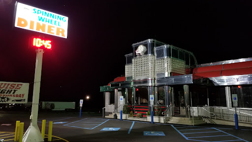 Read moreWe moved to the area some months ago and started trying the diners, because we're diner people. I didn't like this one right away, because I just wanted a grilled cheese and they said I had to order two (two? really?) cups of soup with it. I said I didn't want any soup, it was 'to go' anyway and I didn't want a bunch of soup rolling around in my car, but they insisted I had to get the soup and I had to pay for it, they wouldn't reduce the price for 'no soup for you'. So that upset me somewhat, I had to pay an inflated price for extras I didn't want. Very strange of them to insist on the soup. The food wasn't good at all compared to our old digs Jefferson Diner, and others we tried in the area (Clinton Station, now that's a diner!). I said I wouldn't go back. But recently the place we wanted to go (Chelsea's, excellent bar & food) was closed, we were on a short timeline and hungry, so we tried Spinning Wheel again, for eat-in. I ordered the Caliente Cheesesteak, and guess what, comes with soup and fries. I didn't want either, they wouldn't drop them and reduce the price. I asked could I have onion rings instead of both of those, no sir, you must have the soup. WTH. My wife had to have soup with her sandwich, which she wanted anyway, and then the waitress comes over and says they are out of the soup. At this point I'm looking around for the hidden cameras and waiting for Alan Funt to jump out, or the soup guy from Seinfeld. Unreal. The cheesesteak was made out of horrible beef (stringy, fatty), cheese was nasty, and it was more an open face sandwich than a cheesesteak, a big sloppy mess laying on both sides of a hard over-toasted sub roll. So, we're done really, due to the inflexibility, quality of food, and over prices. Fool me twice... The fries weren't bad and the waitress was nice and very apologetic. I felt bad because I overheard a guy a few booths down saying he was there on a road trip because he heard "Jersey is all about the diners" and he wanted to try one. I wish he wouldn't have...