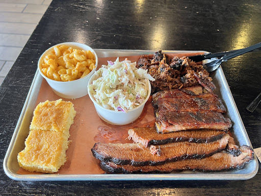 Ordered the three meat combo. Brisket, ribs, pulled pork, hot, and ordered two sides, which were à la carte (coleslaw and the mac & cheese). Also also ordered cornbread. Was a bit disappointed that the sides and cornbread weren’t included in any meal option. They were all à la cart. Felt like the prices were a bit on the high side and some small sides or cornbread would be included. But no dice.