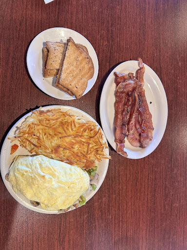 Decent food, poor service. Very rude ppl. I stopped the waitress to tell her my wife's eggs are under done. She tells me she ordered them over easy so that's why the whites are runny. No, whites are not supposed to be raw for over easy, this is all to common of thing. But her response is, 'that's how we do it here'. Guess what hun, your doing it wrong. Then i sent back my toast because it tasted moldy. My wife tasted it and spit it out. So as I pay for my family's meal, I notice the side toast is still on the ticket. I ask the hostess to remove the toast because I sent it back, (literally 2 bites taken from it). She kinda looks at me weird and says she has to ask my waitress cuz she didn't serve me. "Ahh, you got me. The nerdy tattood guy is definatly trying to get over on you for $1.99. You have foiled my nefarious plot". Seriously, I've been profiled plenty of times because I'm almost completely covered in tattoos to know what's up. So the waitress comes over and tells me that my toast was fine, and that it was from the same bag as my wifes. That mat be true that it came from the same bag, but I don't want to pay for something that tastes like a dog turd dipped in cool ranch. She makes me pay for the toast I sent back and DIDN'T eat. All in all, I'll say this... Don't deal with these ppl. They are rude, ignorant, and pushy. The establishment is dark, dirty, and kinda worn down. My meal was good, (ranch breakfast burrito), my wife's meal was ok except the eggs being raw (steak and eggs) and my mom ordered biscuits and gravy but told me it was ok. So halfway decent food with very, Very poor service. I will never eat here again, and am now going to go out of my way to warn ppl to not patron here. Wish I got the name of our server to put on here. But between having to evacuate because of the Carr fire and the lack of sleep, I...