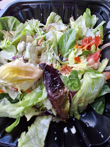 The wife ordered a basic burger with a green salad. The burger came dry so you have to add the condiments. Not a bad idea. The only problem was the meat patty was cooked to very well done. That made it dry and chewy.