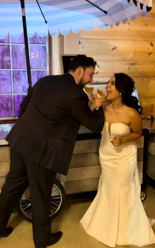 We had the pleasure of having Sling Nâ Scoops serving at my daughterâs wedding on October 8, 2023 and I canât tell you how happy we were that we decided to have them there. Leading up to the wedding we did a taste testing at the shop in Red Bud, IL. The flavors and quality of their ice cream just absolutely blew me and my wife away. (The shop is so charming also.) Katie and Kyle are so wonderful and friendly that it really made working with them a real pleasure. They are just a great team and both wonderful people. On the day of the wedding, Katie and Kyle had a special flavor set aside just for me that I barely touched (because of my nerves) but one thing I didnât have to stress about was if the guests were enjoying the ice cream. Everyone was raving about it! I highly recommend having Sling Nâ Scoops at your event, you will not be disappointed I promise. They made a sweet day, even sweeter for my daughter...