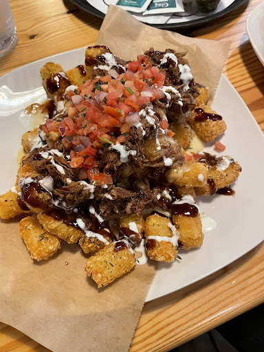 Pulled pork nachos were fantastic! My fiance and I ordered a shareable size, and I wished I hadnât ordered an entree too. The nachos filled me up (and this is coming from someone that has a big appetite!) My grilled chicken sandwich wasnât anything noteworthy, but the tater tots that came with it were deliciously crisp and my fiancĂ© enjoyed his smokehouse burger.