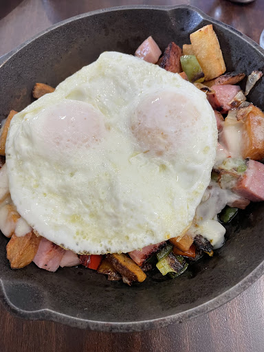 Our server didn’t check on us after the initial bites, and when she finally returned, we were already pressed for time. Her suggestion to order them “more over medium” made me laugh; I specifically wanted a runny yolk with properly cooked whites. I hope the owners take note of this. It’s essential to train the kitchen staff on how to prepare...