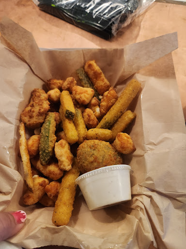 My wife ordered chicken wings with garlic parmesan. The wings were good, but the sauce cam in a pre-packaged cup. She also order a side of fries, and they must have used a huge potato because they were served in a very large basket.
