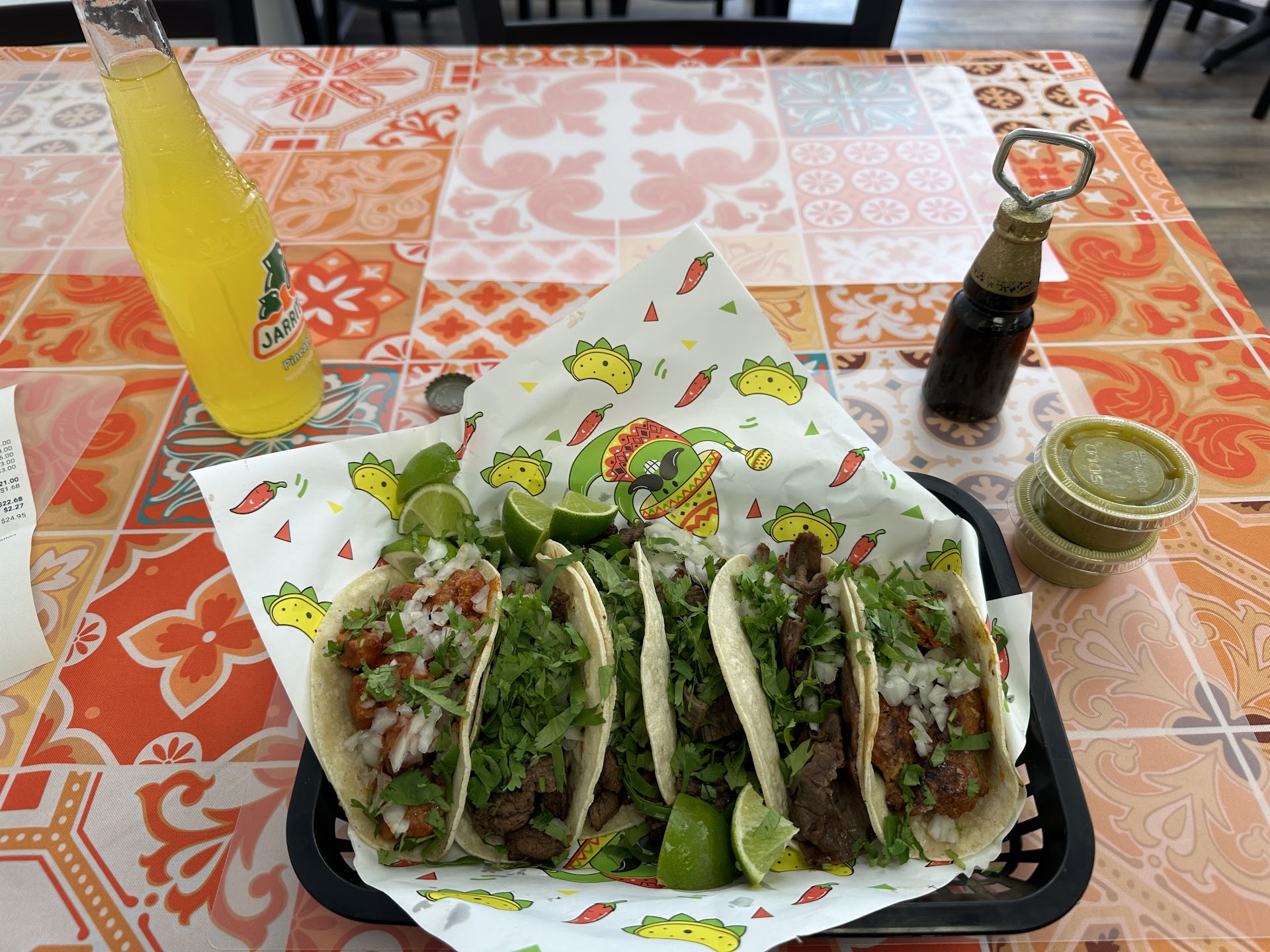 I got the pollo and chorizo tacos, he had the steak alambre. I have been to a lot of little hole in the wall Mexican spots, but I say this without any exaggeration: probably the best freaking tacos I have ever had.