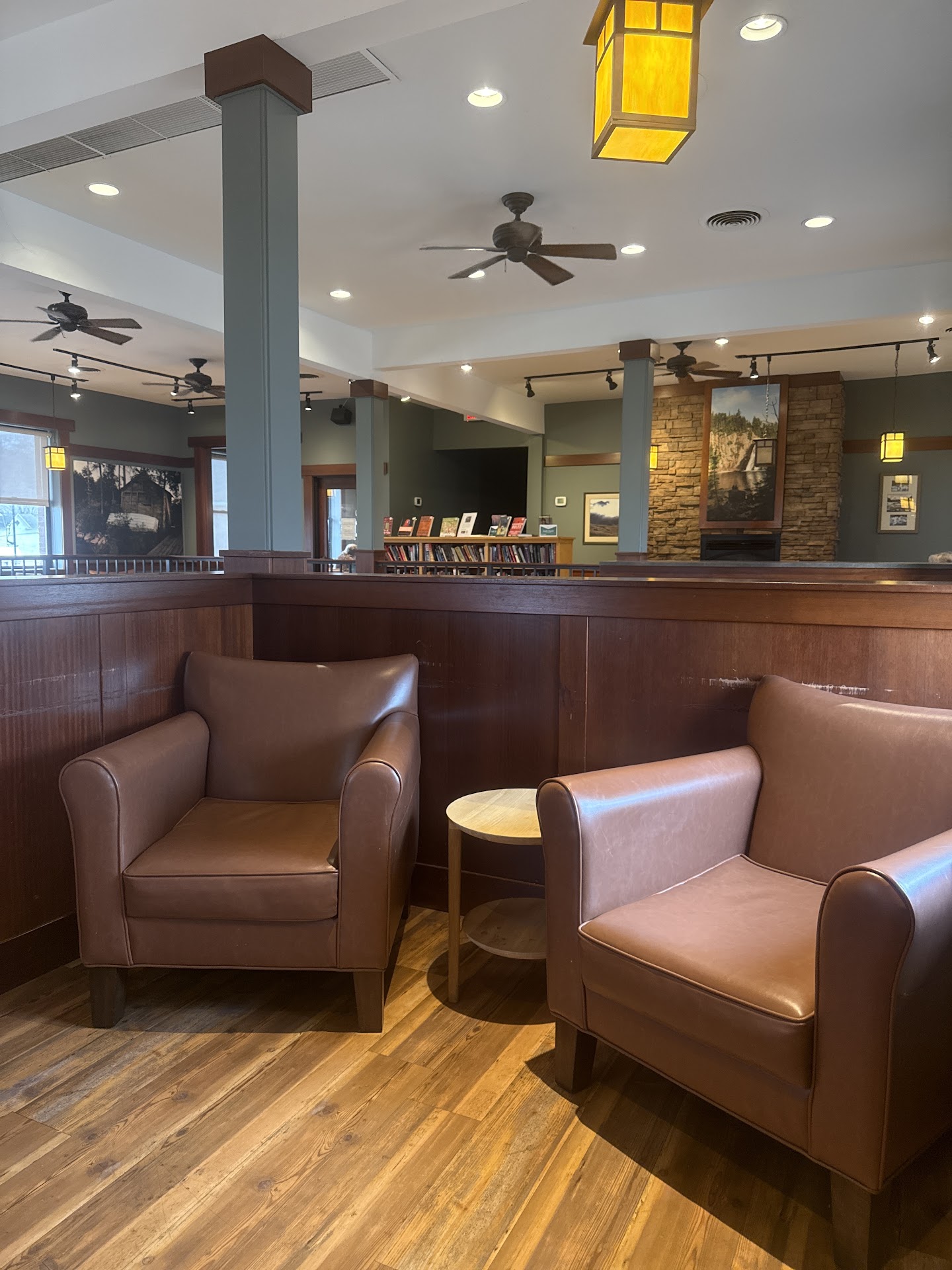 Perhaps my favorite part was the small library collection they had on the 2nd floor, stocked with books from a local book store. The books were available for reading there, or could be borrowed to read elsewhere. A sign posted on the library shelf stated that if you were to take a book home to read, you should return it to the bookstore where you could then purchase it if desired, or...