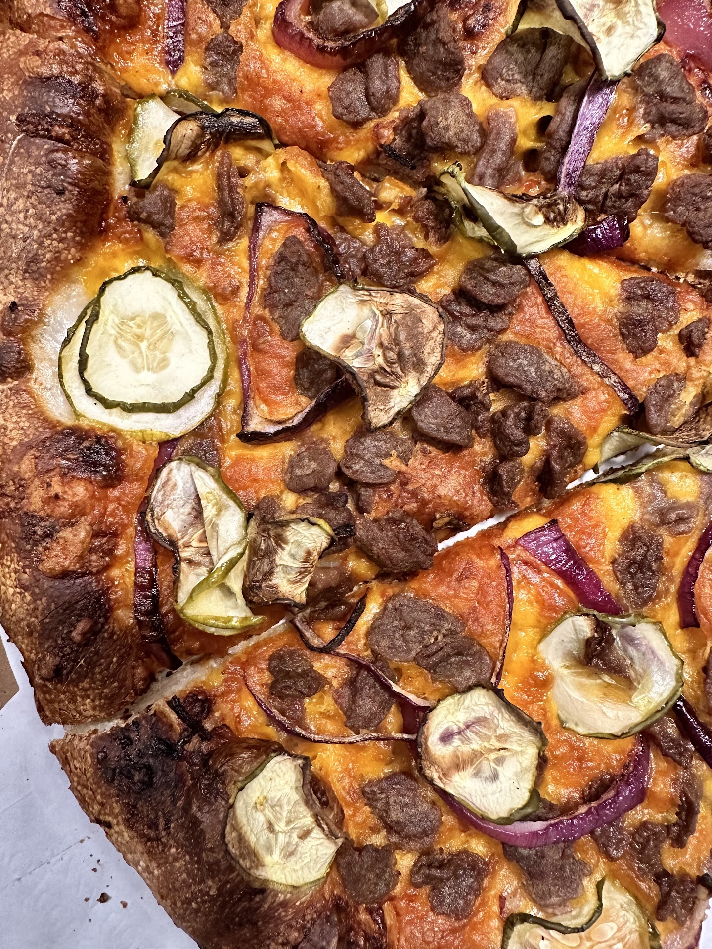 New review from 3/3/2018 (copied from our Yelp reviews): Ordered two pizzas for pick-up since I had friends coming over for dinner (and I had just worked a 12-hr shift). Had to decide between Marie's or RWB and chose RWB after a heated discussion at work regarding who had the better pizza for the $. Since my initial experience was great I figured it was worth the $ to drop $40-something on two large pizzas. Sadly I was mistaken. When we got there the staff indicated that both pizzas had JUST come out of the oven (which, once ready & boxed, they opened boxes facing them and inspected before sending us on our way). We hurried back to the house to meet our other friend who was coming over and didn't bother to reinspect before leaving. One pizza had ingredients added that weren't indicated (& I couldn't eat) while the other, a plain cheese pizza, was terribly overcooked. The cheese pizza was overcooked to the extent that microwaving for 20 seconds (once we got back to the house) provided minimal results in softening the cheese and crust. I'm attaching a photo. I think I'll give this place one more shot as they say "3rd time's the charm" but for significantly less $ we could have just ordered Dominos and not have been disappointed.