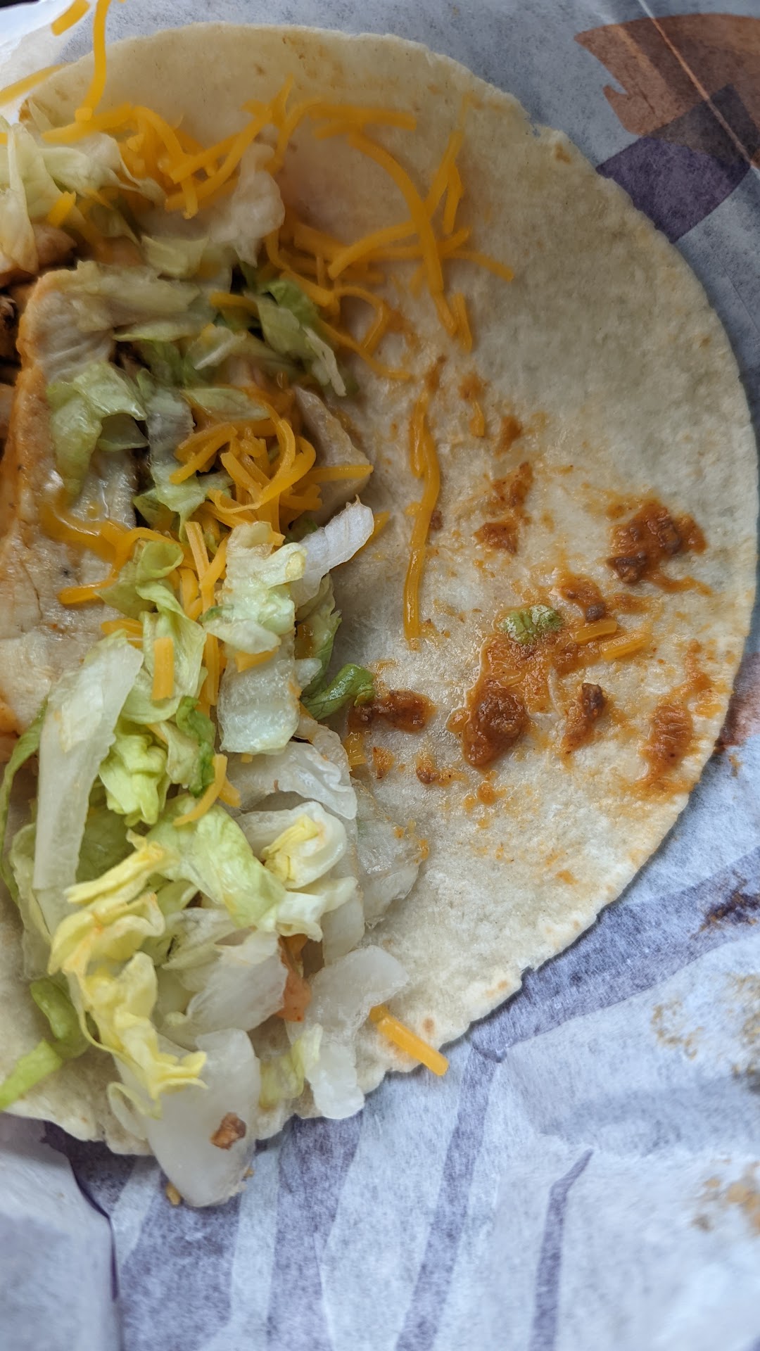 Read moreI come here almost daily for close to 5 years and have never had any serious problems with the place other than quality of the food changes drastically depending on when you show up. Today I came in and ordered my food and asked for the taco to be chicken instead of beef. What I received was a chicken taco that had been originally made with beef then they dumped the beef out and put the chicken on top of it. As a person that worked at Taco Bell for almost 3 years and was a manager at one point I can tell you this is not what you're supposed to do. The tortilla should've been thrown away or set aside in case it was needed for the next order. Instead I received the most disgusting taco I've had to eat from here and I didn't get past one bite. Looks like I'll be more hesitant to eat here now if they can't get something simple like that figured out. I've included a picture to show what was left on one side of the taco but it doesn't show what left under the...