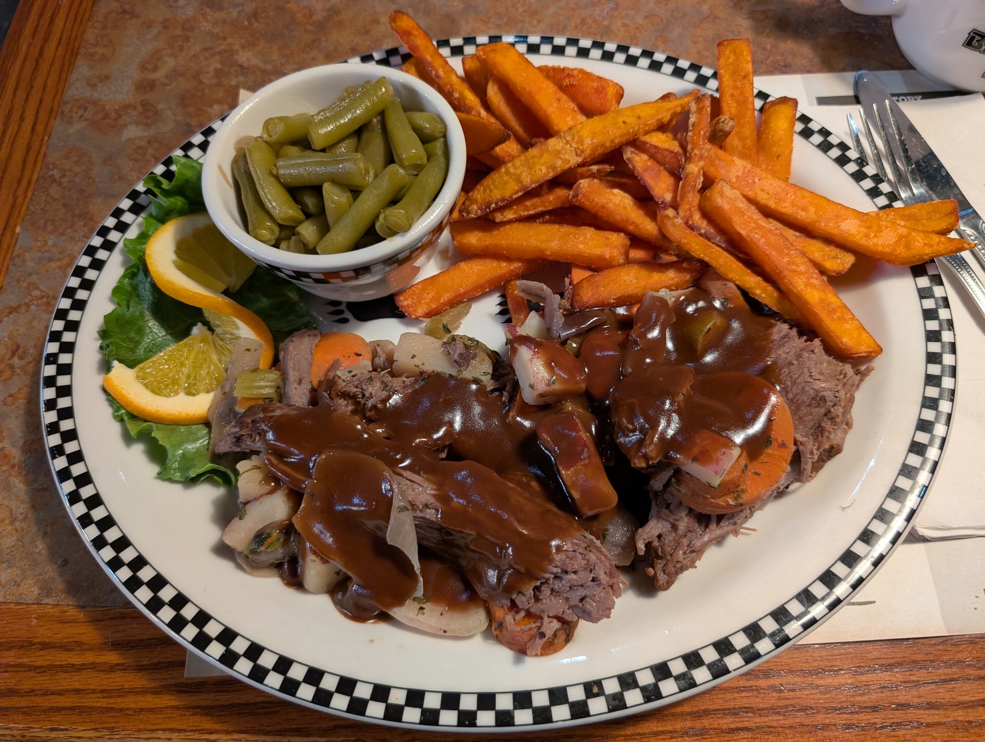 Read moreThis is long overdue but I am finally getting to it. As mother-of-the-bride for our daughter's wedding in Redding, CA, especially as we were from another state, it was quite a challenge to attend to all the details & facets of planning for this very important occasion. In my search for a venue for the rehersal dinner I was both delighted & relieved to find that Black Bear Diner would be available to accomodate such an event & found Quintin, one of the managers, to be so hospitable, engaging & a joy to work with! He put me at ease right away with the assurance that they would give their best attention, as this was something he had been hoping to develop more & facilitate in the future. We were the first party to engage their facility for this type of use. The other manager & serving staff were excellent on Friday night, November 15th, 2024 attending to all our guests & extended family. We ordered from the menu a pre-set dinner which, though a bit delayed, was truly delicious & worth the wait. The servers were wonderfully attentive in getting everyone their drinks, (& refils), as we waited, & then continuing to replenish & keep the food hot as needed. The space was cozy, warm & welcoming which meant I did not need to do any special decor. They allowed me to set up a small table with a welcome sign announcing the bridal couple. I am happy to give a thumbs up & kudos to Black Bear Diner & staff for helping to make a memorable evening even...
