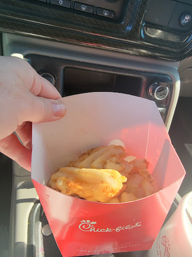The stars given are based on food and cleanliness. The stars not given are due to the experience. We had to order online as the dining room was closed. As I waited a large group of early twenties late teen-aged kids entered. One who preceded them informed them they couldn't order inside. They laughed and simply ordered online as they stood there. They then took up the seating meant for pick ups and door dashers. I was waiting for our order which had already messaged my phone that it was ready, it wasn't. As I sat, one ridiculed me in an indirect passive aggressive way, thanking her other friend for giving up his seat for her. Meanwhile raising her voice mentioning that it was so sweet to give up his seat for a girl. They got their order and began dining and having a fun merry time right there in the pick up area, as they sat with their friend, who apparently works at Chick-fil-A and was there with them dining inside, after the manager told them the dining area was closed and they couldn't even order indoors. As I waited for my order several other door dashers and online orders entered waited, while standing, or leaning on the counter or walls, watching the loud, rude kids, including they're off duty employee at the head, as we all waited gathering more frustration, the comments kept being thrown my way, apparently they had more friends on the way, I got my order, late, left, on the way out a Fiat with two more young ladies same age group entered, with phones in their faces, and joined the rest, taking my previous seat and the final open seat across from it. As I left I marked the time and date, September 25th, 8:02PM is when I left. There is no indoor ordering, no indoor dining, and a small waiting area with seats for pick ups only. Yet an employee and her friends took all of the seats, got special treatment, were not asked to leave, ordered online while inside, and enjoyed a fine fun dining experience as everyone had to stand or lean on something waiting for their pick up orders, to grab and go, as the rules are written. This is unacceptable and I will be contacting corporate. I'm no stranger to Chicfila or the Cathy Family. My family has enjoyed their company and their food for generations now. I don't think that Redding has the caliber people to uphold the good name of Chicfila. It is not some basic fast food establishment. Some reeducation...