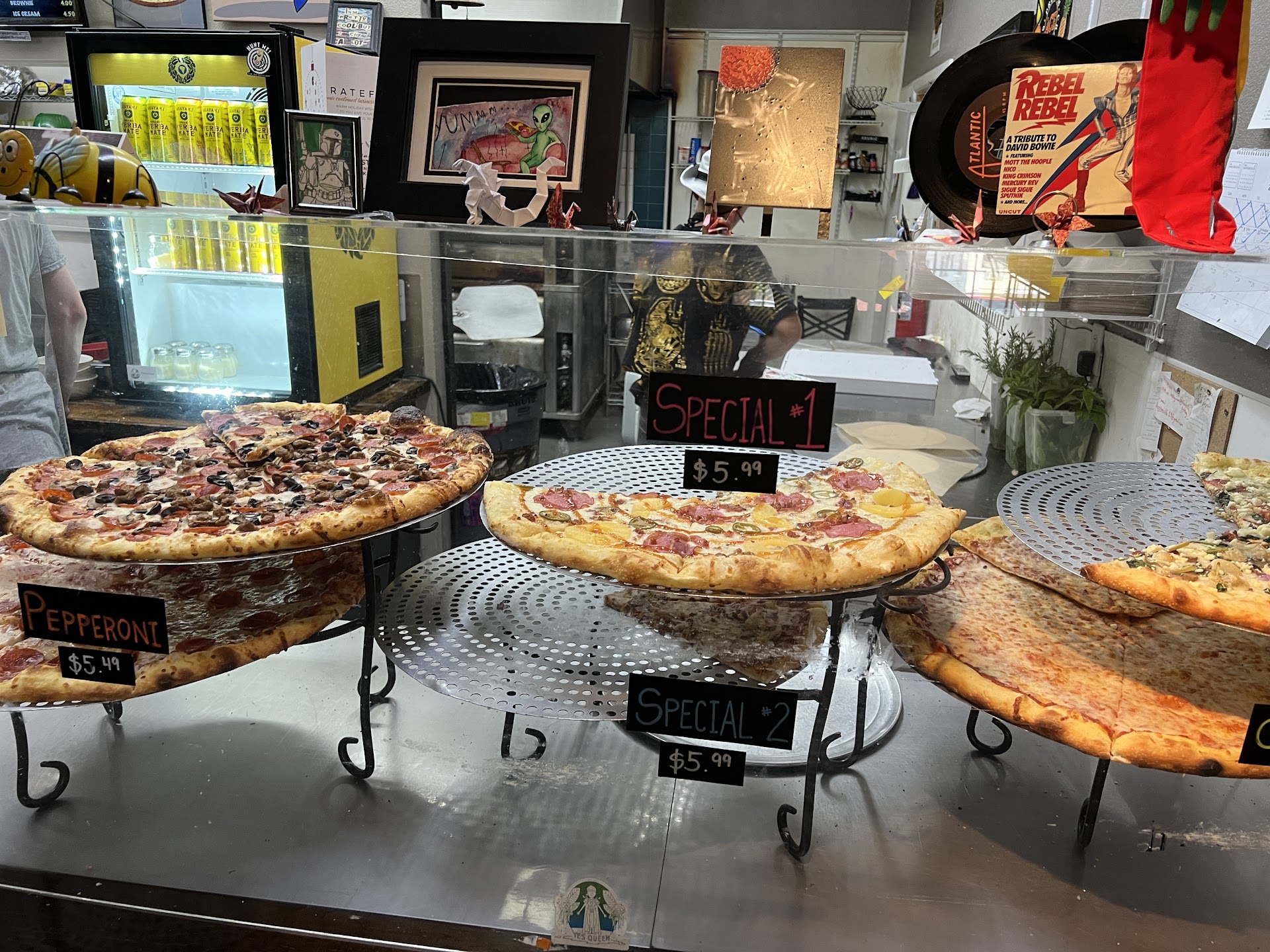 Read moreFor somebody who avoids down town Redding like the plague, I'm now lured in by the great Fratelli's Pizza. Finally a pizza by the slice place with a laid back atmosphere. Sitting in a industrial building admiring the 80's atmosphere, I almost expect to be over run by swarms of man bun hipsters and yet I am not. My frosted mug of root beer and I are in harmony and I am grateful this great establishment has come to be. The workers have really created something unique. I get a feeling of childhood nostalgia, similar to places where I attended childhood birthday party's in decades past. Arcade games, paintings, etc... The staff are very nice people and have a very sincere way about them, so different from mechanical franchise mentality we see so much of these days. Also a friend of mine mentioned they import their flower from Italy, no wonder the crust is so good. Thank you Fratelli's for being...