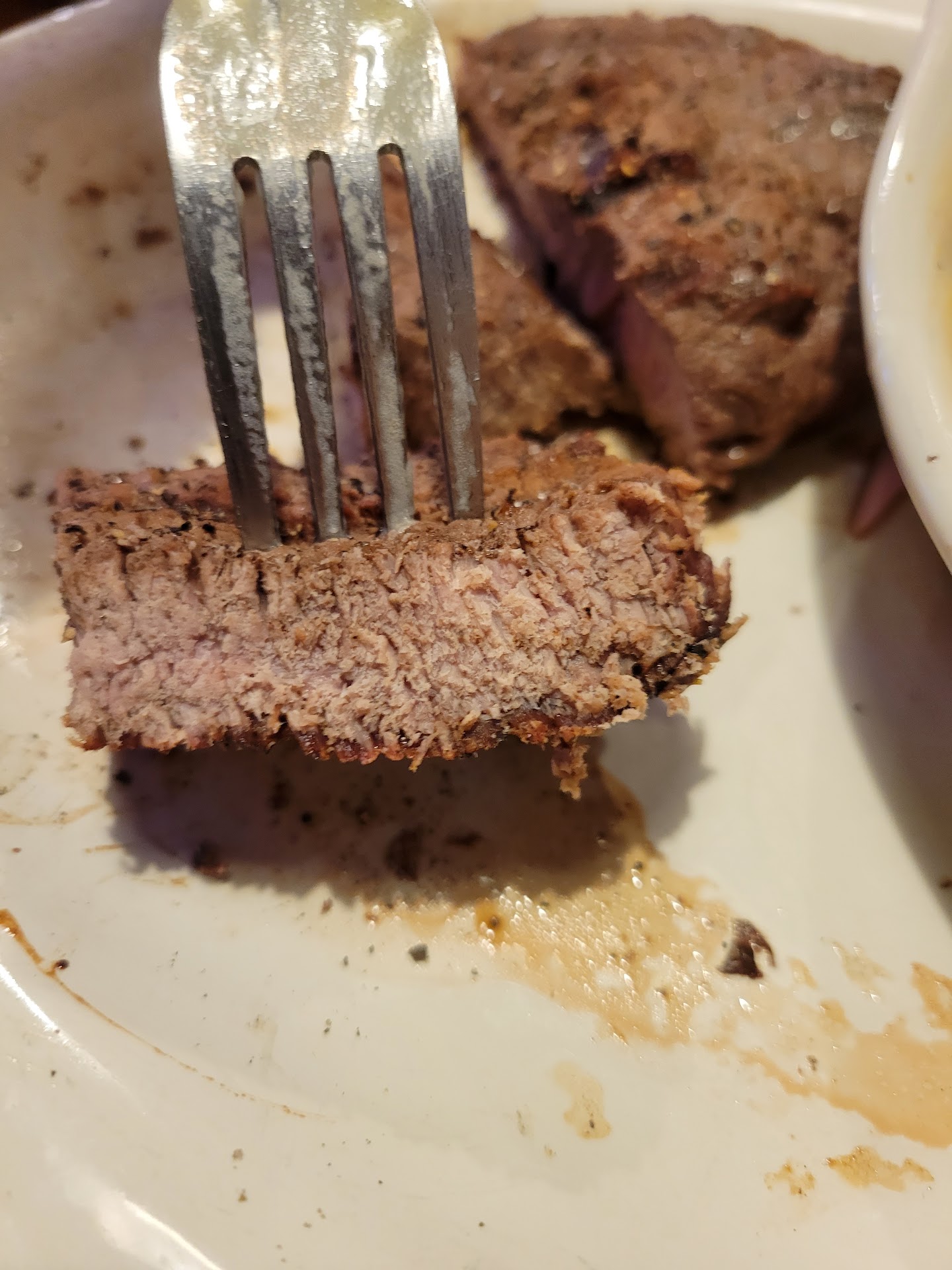 Read moreIt was our 36th wedding anniversary (4/7/23), we are a one income household so for us to treat ourselves to an expensive dinner ($33.00 each per meal not including starters and drinks) to celebrate this milestone was something we had given a great amount of consideration on before spending that amount of money on one meal. We ordered mushrooms with ranch instead of the sause that came with it for our starter. They brought us calamari & apologized for the mistake. No problem we thought; mistakes happen. My husband felt bad about eating his salad while I was waiting for our starter. Thank goodness they finally brought us rolls. Well, they brought us the mushrooms with the sause it originally comes with, we didn't noticed this until the server was gone. By the time we found a server to bring us some ranch the mushrooms were cold. When our steaks arrived we asked for A-1, what we got was an empty bottle of A-1. Again the server was gone before we noticed it was empty. I had to leave the table to go find our server to let her know the A-1 was empty & could we please have another bottle that wasn't empty. Our rib-eye steaks we're 1/3 to 1/4 of fat with no flavor. When the manager asked us "How is everything?" I replied "Horrible! it's horrible! It's terrible! I seen him talk to our server soon after he left our table. I didn't want him to make amends for this awful dining experience. We just wanted to enjoy our anniversary dinner and have it done right. I don't think that is to much to ask for. The bottom line is that the staff didn't care to get our order right. What a disappointment this dining experience turned out to be! My name is Danna Hogue a very...