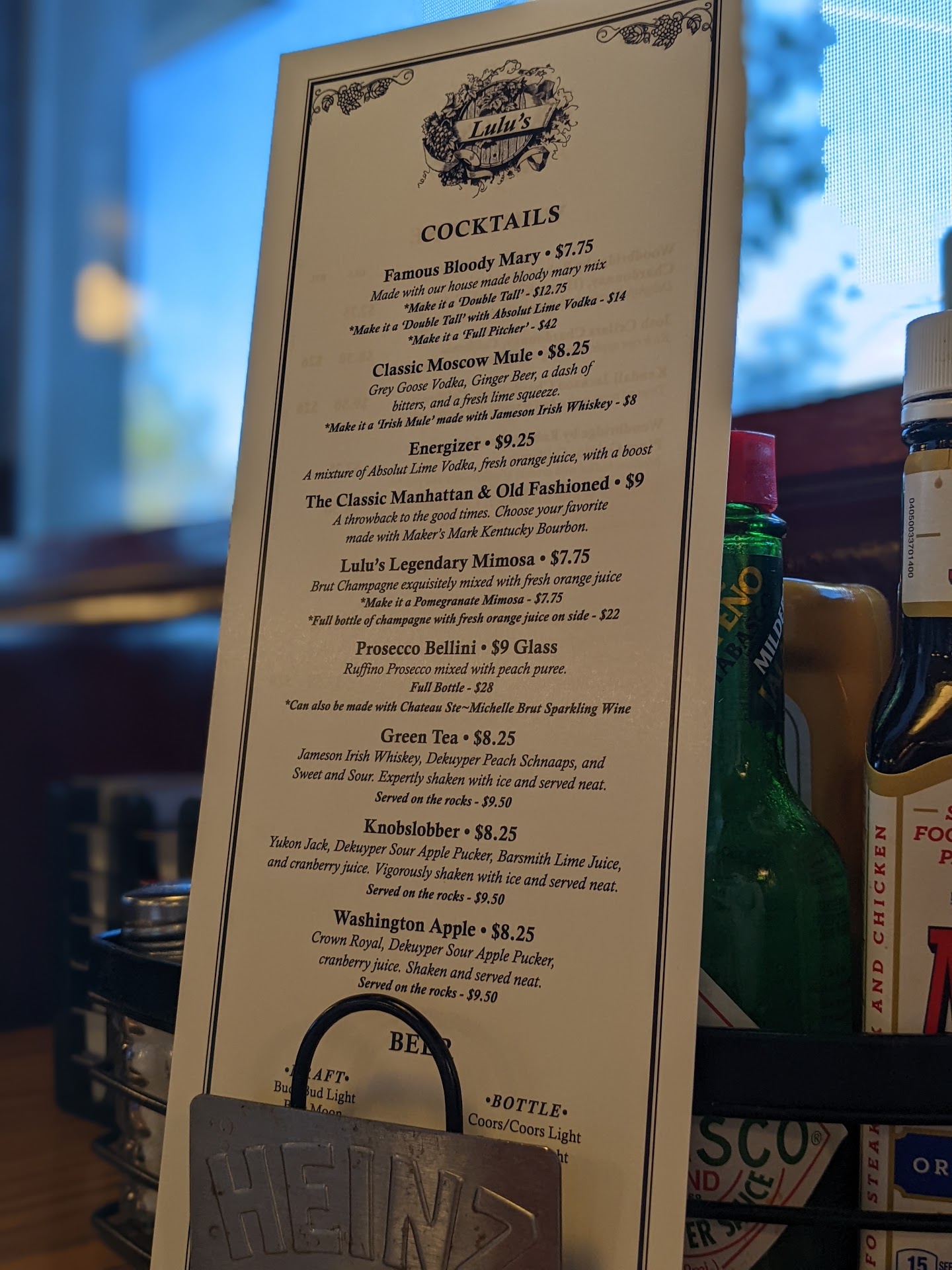 Read moreSo I will start off and say prior to Covid I went to Lulu's multiple times, one day after covid I took my mom because I just loved their food and it was my mom's first time. That visit was a disaster, the waitress was just not a fit waitress for us in particular as she ignored us, never asked if we needed drinks, we waited 20 mins during which time she took other orders from 3 tables before I just got irritated and I asked another waitress. The food order was finally taken and we waited another 20 mins hey what choice did we have we already ordered and we aren't one to order and walk out on an order finally it came to out table nasty it was not good food at all,because of that for about 8 months I did not go there. I went today Oct 11, let me tell you the food was absolutely amazing the woman who cooked the food let me just say she is a heck of a cook and the way she paired her veggies and sautéed with the garlic omg it was good. Second the waitress we had one lady when we first came in, but she was actually getting off and another girl was actually gonna be our waitress but that first waitress awesome, the second waitress let me say she kept a smile the whole time we were in that place she was so kind to nor only us but the other tables she was handling as well, she was outstanding when it came to our food and drinks and she was definitely the kind of waitress that people enjoy. Great job Lulu's you got my business back as a patron that is for sure, keep up...