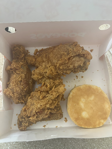 Read moreAfter a long car drive my family was hungry for chicken with pass Popeyes experiences being good we thought to go to this Popeyes. The only positive I can say was the chicken was good however the biscuits was gross and the Mac n cheese was dry and also gross. (The 8 year old in the family said box Mac n cheese is better). I believe the lady that helped us was the manger - she was great however non of the staff seem to listen to her even times telling her no when asked to bring us our Mac n cheese because we been waiting awhile. Turns out they forgot to put our chicken in and ended up blaming each other, apparently everyone was at lunch at the time we ordered. The manger let us have some chicken while the rest was cooking, I appreciate that however when she was busy doing other things and the fresh chicken came out other people started to get their order before us. Staff was very unprofessional and didn’t have a clue what was going on. If you’re expecting good service and good food I suggest going to a different Popeyes, I heard others are really good.