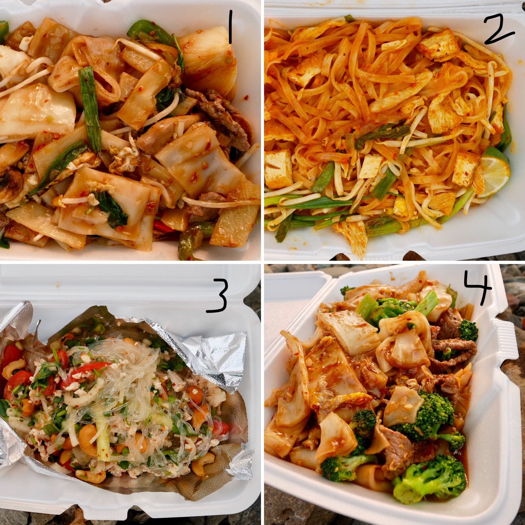 We had beef drunken noodles, chicken pad Thai, yum won sen salad, and a beef pad see eww. The pad Thai had a stronger tamarind flavor than most Thai places. Each had their unique flavors and a must try! Lastly, tried the medium spice level on all 4 and it was on a spicy side but we loved that! Can't wait to come back again! 5 stars for authentic and delicious food, portion size, and...