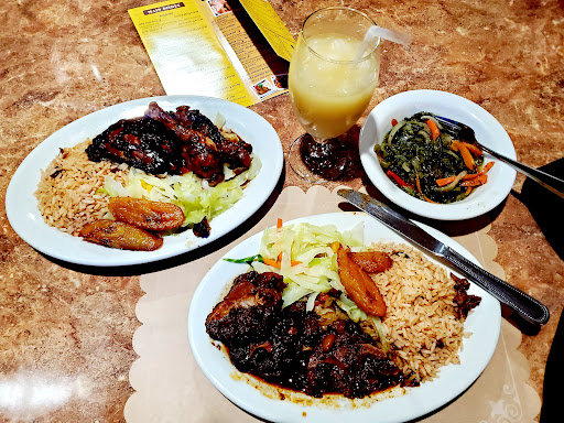 Read moreIt was our first time to this restaurant and actually our first time in ever eating Carribean food. We were a little disappointed that quite a few things we were hoping try on the menu were not available. We were one of the only people dining in but it still took quite a while for our food to out come (but it did look like there were a lot of pick-up orders in their defense). Our friend ordered shrimp dish but chicken was brought out, but due to the lengthy wait (and not wanting to waste food) she just decided to just eat the chicken instead and not ask for a new shrimp dish. Our server also seemed a little stand off-ish, maybe she was just having a bad day or that's just Jamaican culture that we're not familiar with yet. But other than not feeling completely welcome, we really enjoyed our meals. The jerk shrimp and salmon were really flavorful and just the right amount of spicy. We also thought the sides of rice and beans, cabbage, and plantains were really tasty as well. The plantains were nice a light unlike other heavily fried plantains we've tried elsewhere. The tables and restrooms were clean too. Overall, good food despite the wait time and reduced...