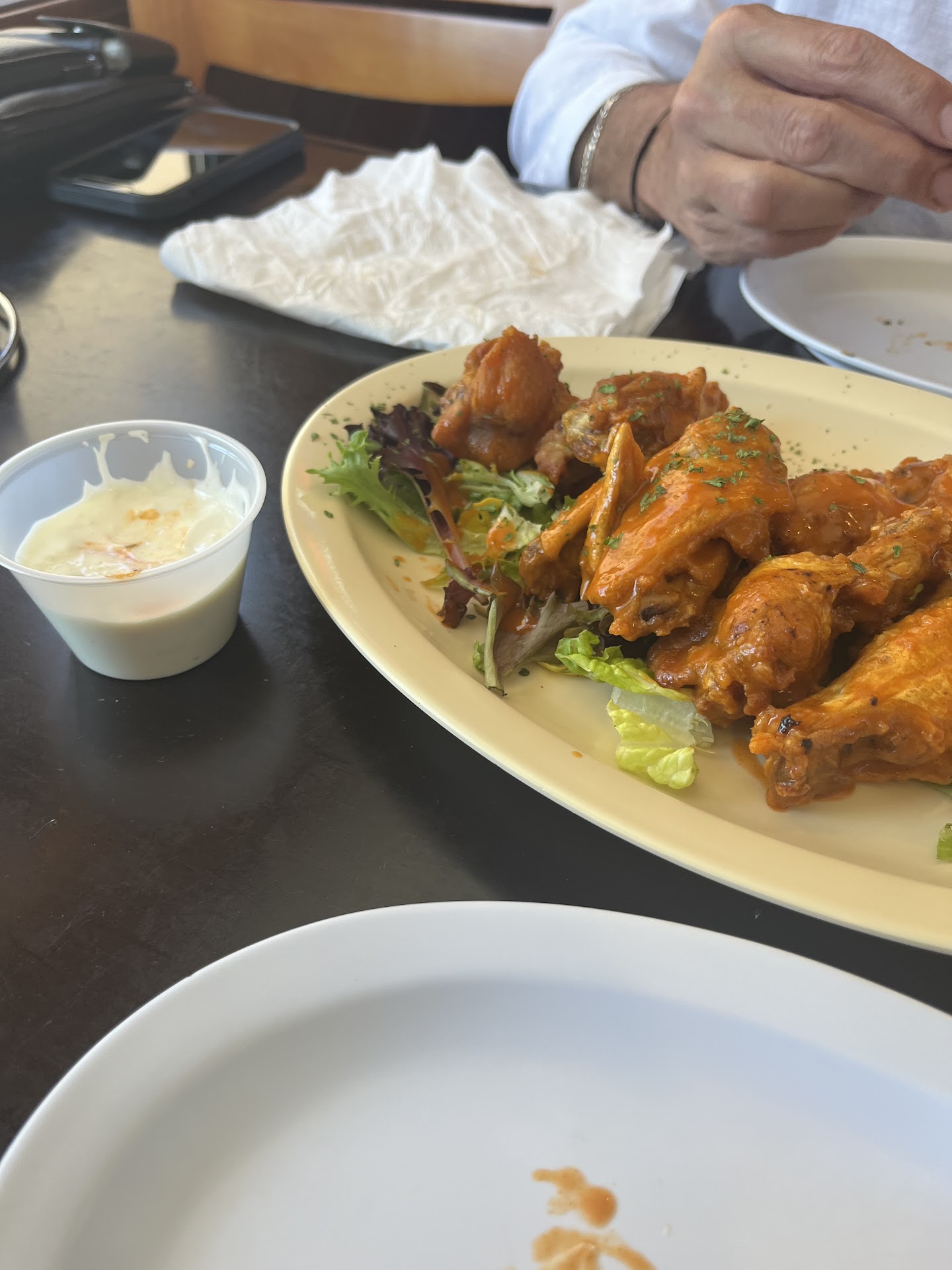 It took a while. Enough the waitress told us they sent another guy to the kitchen to help out. There was only us and another table. I got a chicken ceasar salad, and my partner got the buffalo chicken wrap. 16 minutes later, they came out to say they were just waiting on the wrap. And yes, the other table had their food. 8 minutes later and it came out and was incorrect. Only one of us got a silverware set since I got a salad, and there was no other napkin for my partner. We noticed some tables had paper towel holders, but ours did not.