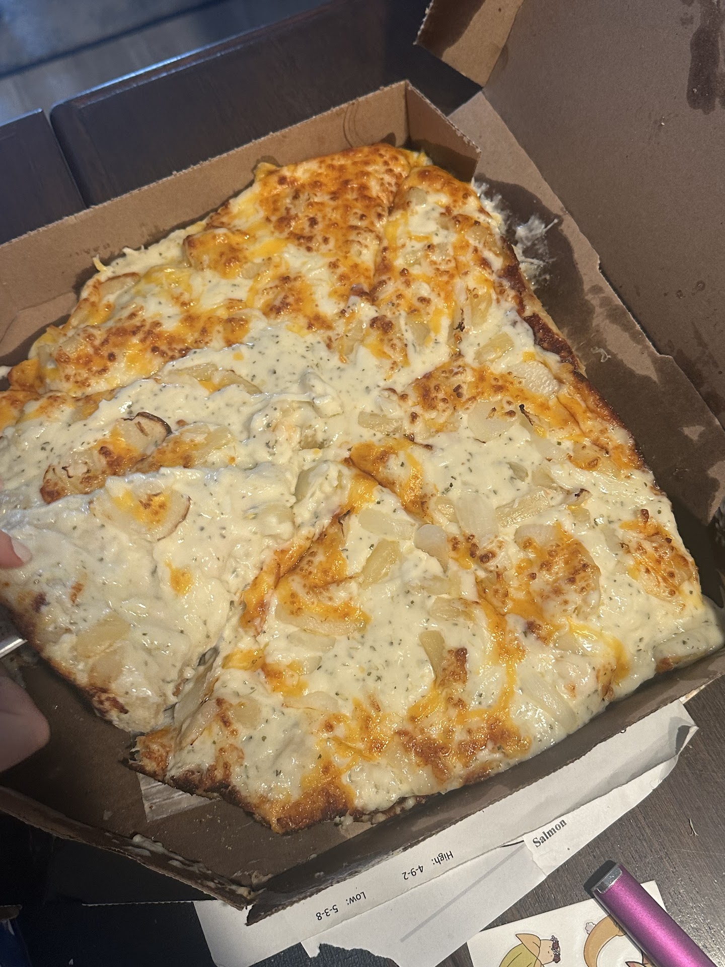 I ordered a pizza that did not get any of the toppings or sauce I requested. I originally placed an order with Buffalo sauce after bake on my pizza. I called to add bbq sauce after bake as well since it wasnât an option on the app. Evelyn the manager told me I am not able to do it since itâs not an option on the computer. I mentioned I do this every time I order Dominos but she told me she canât. I asked if thereâs a way to just charge me extra sauce and add it when the pizza comes out and she said itâs too busy i canât make sure I am there for your pizza when it comes out of the oven to ensure the bbq sauce gets on the pizza. So because of this I ask for no buffalo after bake then and she said thatâs fine but if I still wanted everything else and I said yes. After I get there I wait 5 minutes outside and she acts like she doesnât see me. I get home to see that the pizza I am describing was just a plain stuffed cheese pizza with tomato sauce and not the parm garlic sauce with pep chicken and bacon i ordered. I will not be going to...