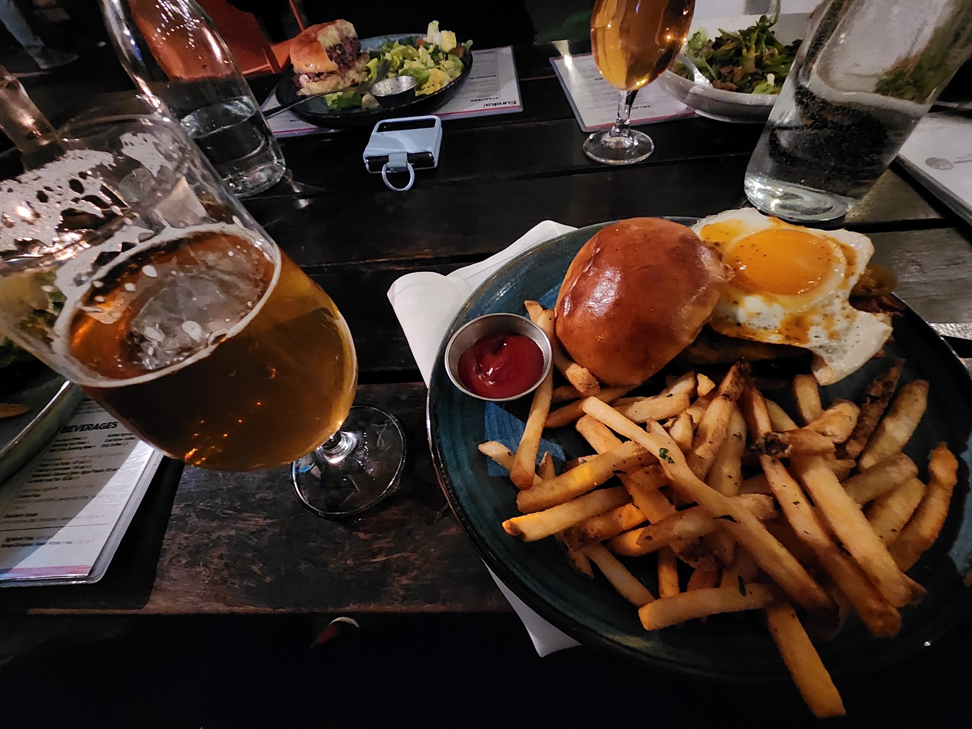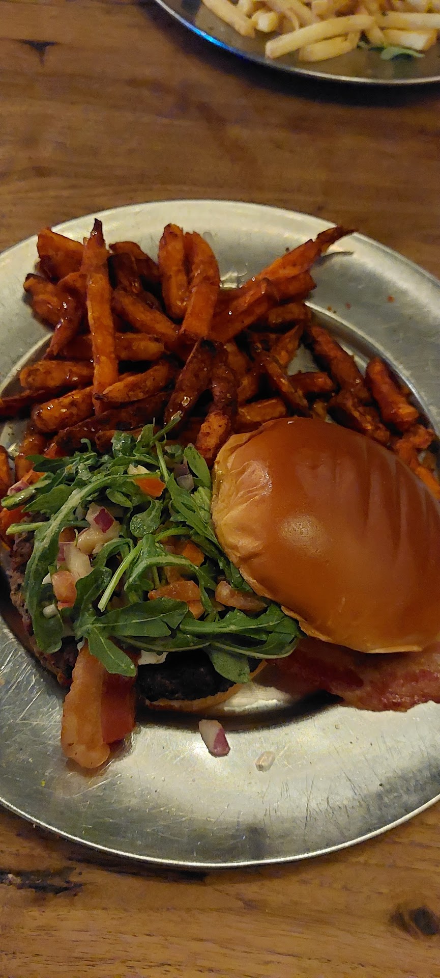 For all the tough critics on flavor... THIS is the spot for you! I’m a firm believer that the fries of a spot should deeply represent that location and I was very right! Not only did the three people in my party love the fries, it hit the spot for each of us and we all prefer very different foods and have different diets. They had a fresh aroma, were hot, and not overly salty. Oil didn’t drip from it and every fry was perfectly delicious even until the last one! I had the Eureka! American Burger with a well done patty. My goodness, that patty BURST with juiciness and flavor, so much so it surprised me and I couldn’t fully register what was there that I could see (lettuce, pickles, meat, sauce, cheese, onion) between the toasted burger buns! I was amazed and impressed and finished the whole thing in one sitting! My friend had the chicken burger and thought the hot powder made him cough a bit (having inhaled it), he found the chicken to be juiced and not overly fried. And my other friend had the Beets Veggie Burger and she was surprised by the burst of flavor that went beyond the simple ingredients. We all commented on the pickles, which added that extra crunch, and found ourselves pleasantly immersed in our meal. The only unexpected dish was the Brussel sprouts. We were mostly accustomed to baked sprouts with a lighter and paprika flavor, the orange chili was too much and we could barely taste the chimi-churi on it. In the future, we would want to get the orange chili on the side so we could choose our amount for our different palettes. The biggest pleasure came from the dessert that steamed when we parted it. Most only dream of it, but we got a soft cake interior, cold ice cream, and caramelized pecans on the side with caramel. This was quite the closer of what felt like a perfect meal!! The hostess was very friendly and our server was more than helpful in helping us choose options. The restroom was clean and there’s a nice lot behind the building from the main street side. And social distancing was enforced and helped with the easy feeling of the meal. I would highly recommend it...