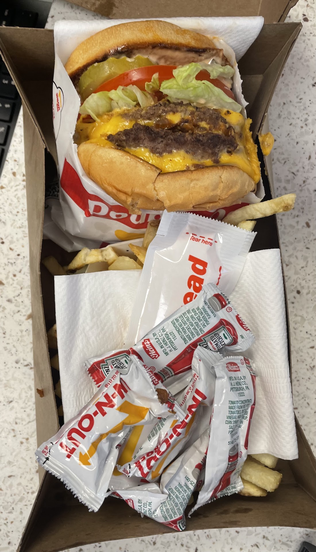 The fries and burgers were good and the employees were polite and friendly at this location, but the drive-thru wait was probably the longest I've experienced at any In n Out. Even at 6pm during peak hours on Saturday evening, no employees were outside taking orders. It took about 10 minutes to move about one car length. I hope In n Out addresses the drive-thru issues at this location soon, since I live in Redlands and was looking forward to having an In n Out...