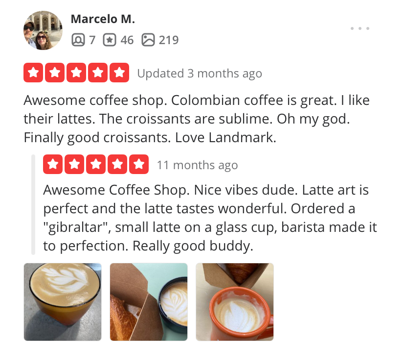 Read moreThis place has the most obnoxious customers anywhere. They should strongly consider instituting even a minimal rule about using the space as an office. One person sat down directly behind me, on a couch right behind a chair meaning he was shouting at the back of my head, and started having a loud full-volume speakerphone conversation. I asked him if he had headphones so he moved a few feet away and continued the conversation, then did his DMV training videos for over an hour with no headphones. Bro. He was so amped (on coffee?) he was also pacing around the place with his laptop on his arm, just drinking a juice not even from Landmark and doing his thing like he owned the place. (Does he own the place? I hope not, not a great vibe if he does, lol.) The guy sitting next to me is wearing an actual one-ear headset thing, and having loud zoom calls, like not even realizing he is actually shouting with his colleagues online on his multiple laptops. Like, I totally appreciate the grind, but.... ya gotta let everyone have an equal opportunity to get on it, no? Not just the rudest and...