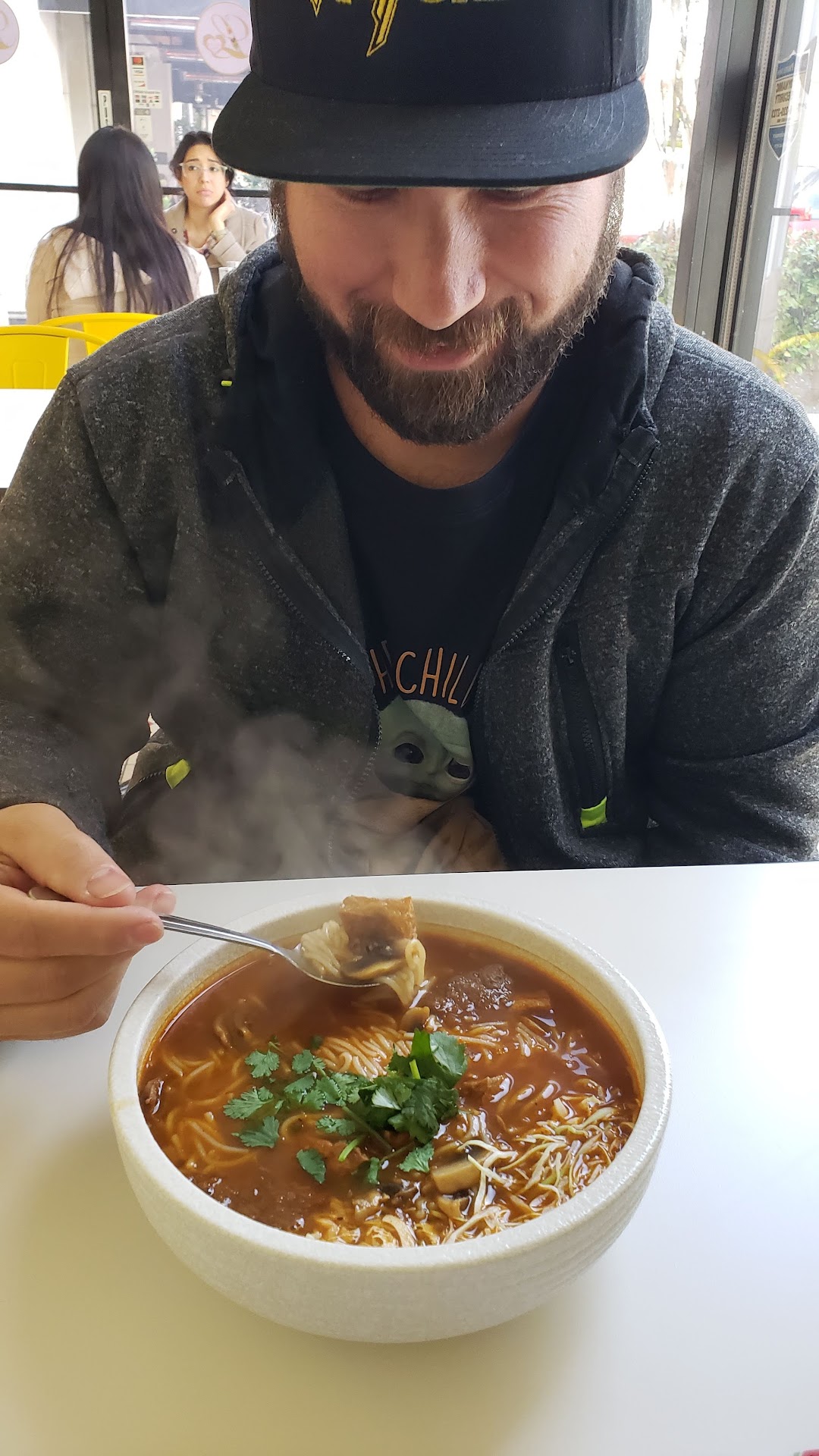 I tried the spicy ramen and it was decent, but it's not a ramen specialty place so I probably should have ordered something else. I felt like the noodles were too skinny and a little softer than typical for a pho or ramen. But the broth was good and just the right amount of spicy for me. My wife got what looked like beef broccoli (but it's a vegan place so it was tofu) and the sauce on that was delicious! She didn't enjoy the tofu as much, but I liked it in my soup. Could be she just isn't used to tofu as well. So all in all it was a good place, but not amazing and we definitely will go again to try more dishes.