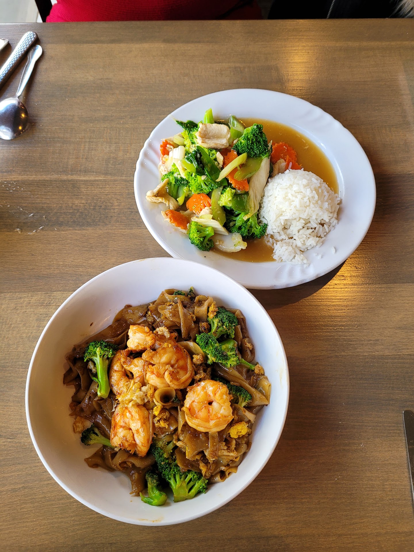 This was our first time here and we were were celebrating a birthday. We enjoyed our food very much. The service was attentive and pleasant. We ordered the tofu lettuce cups to start. They were three generous portions already in the lettuce leaf. They were delicious, but hard to eat because the sauce and filling fell out. I would rather the filling be served in a bowl with a stack of lettuce leaves on the side for me to fill one at a time. We also shared the red curry, sweet and sour tofu and veggie fried rice. We loved them all and there were no leftovers! The red curry was the perfect blend of spice, creaminess and sweetness. My mom had the orange chicken and said it was the best she has ever had. We finished with the purple ice cream for the birthday girl and it was delicious. A large serving for sharing. I can't wait to go back. They can make many items vegan. To Mu, you should put your restaurant on the Happy Cow app. I would have discovered...