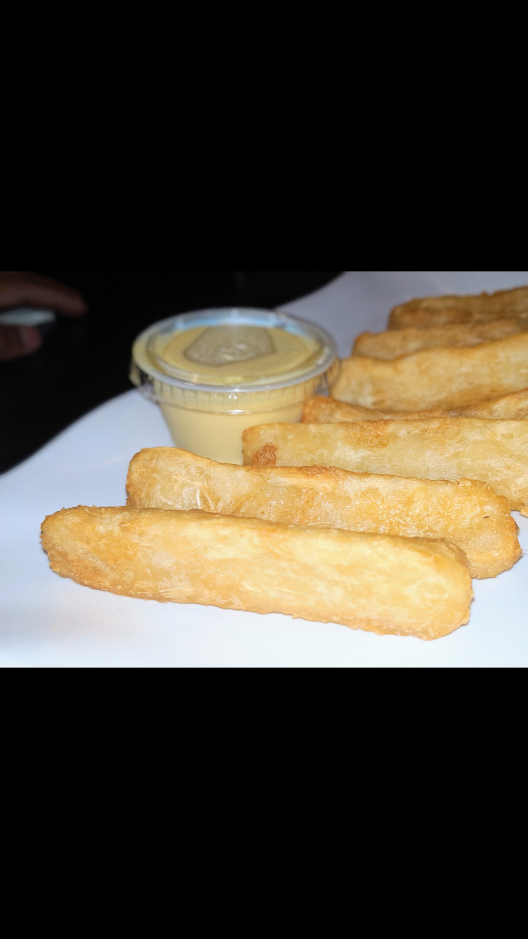 We ordered the "Original Lomo Saltado plate", "Papa a la huancaina", Yucca fries comes with Huancaina sauce. I had the passion fruit drink, Maracuya sweet not too sweet. It reminded me a lot of P.O.G. (Passion fruit, orange juice and guava juice mixed drink) I grew up drinking. And he ordered the "Chicha Morada", made from purple corn. It tasted fruity, tangy hint of cinnamon, cloves, apples, lime...etc other fruits. I had a few sips and noted the sweet corn drink was a thick milky drink, tasted some notes of sweet bitter plum and reminded me of cinnamon horchata.